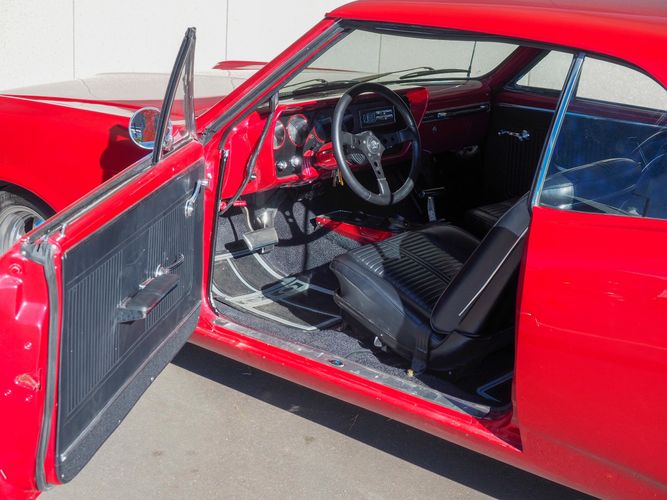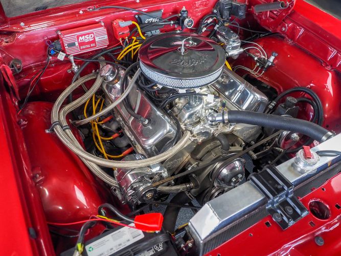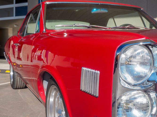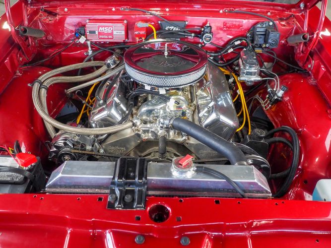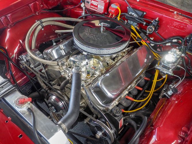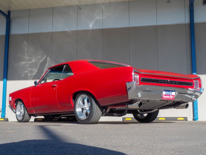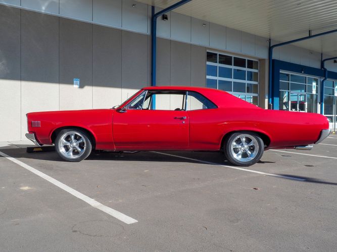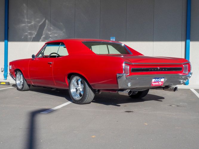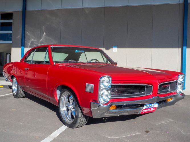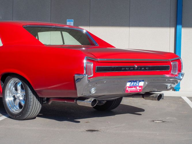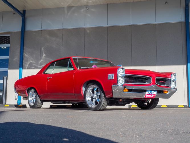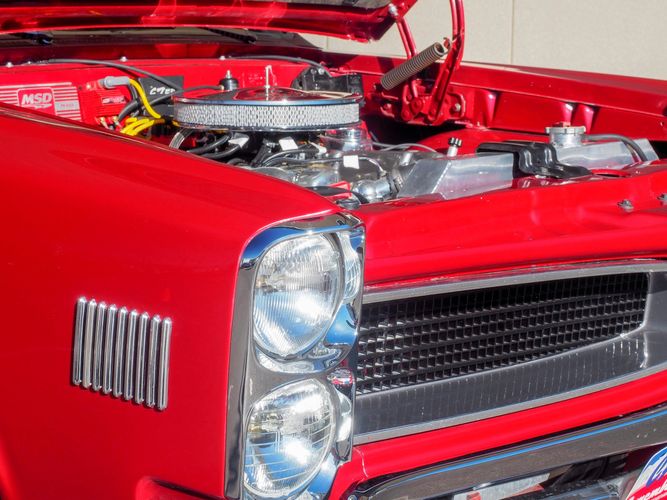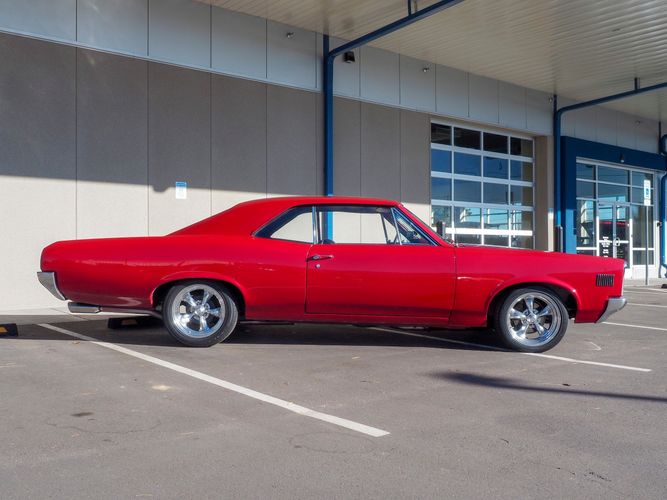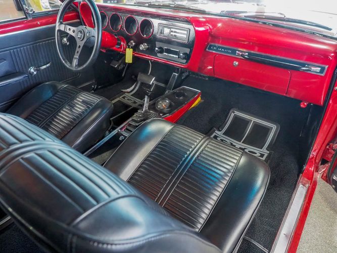 You know that design is timeless when it looks as fresh and aggressive today as it did when it was new, and that's certainly the case with this 1966 Pontiac LeMans hardtop. Very tastefully modified, making it a fast, fun street machine that's an absolute blast to drive. Presented in a beautiful red paint, this LeMans will get all the right attention with its very straight and stylish body. Chrome bumpers and trim are in great condition. The interior is nicely restored with factory buckets, console, ratchet B&M shifter, and a full set of factory gauges. The FAST fuel injection kit allows the 502 to idle smooth and put down some real power. The overdrive transmission is great for performance and long cruises; It increases fuel mileage and the top speed. Overall this car is a great driver that will remind motorists of the muscle car era.