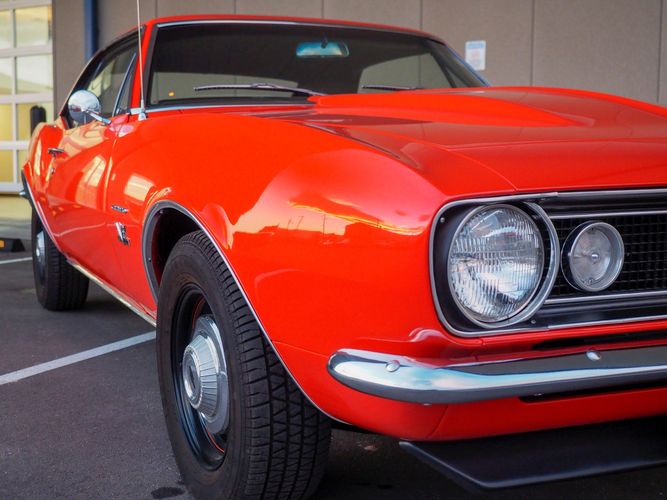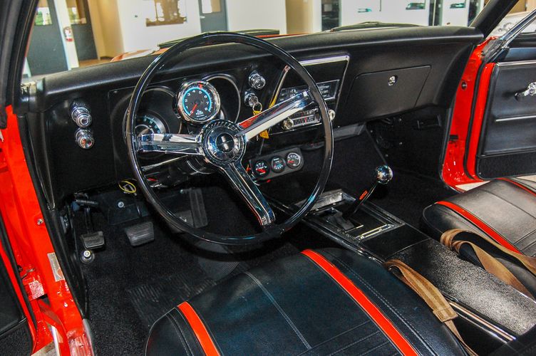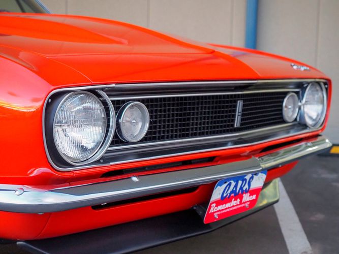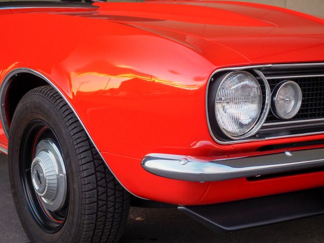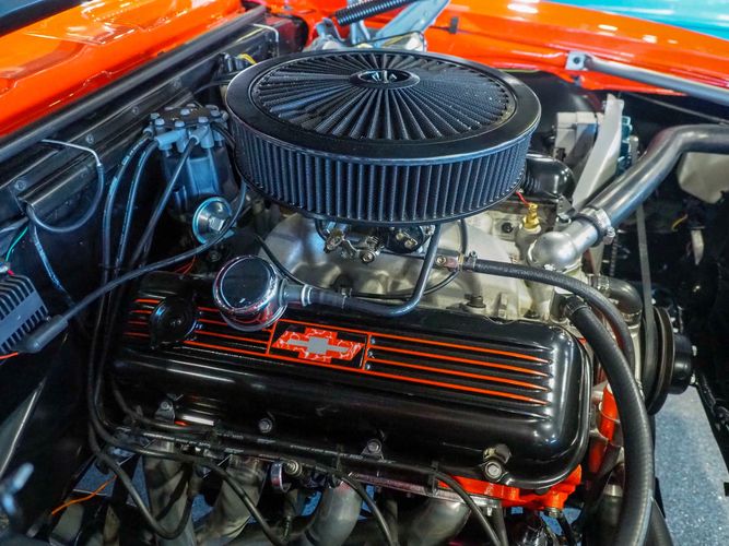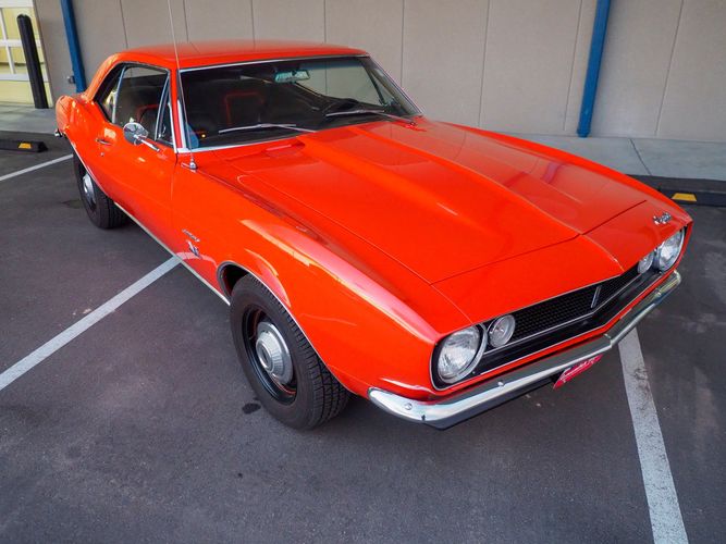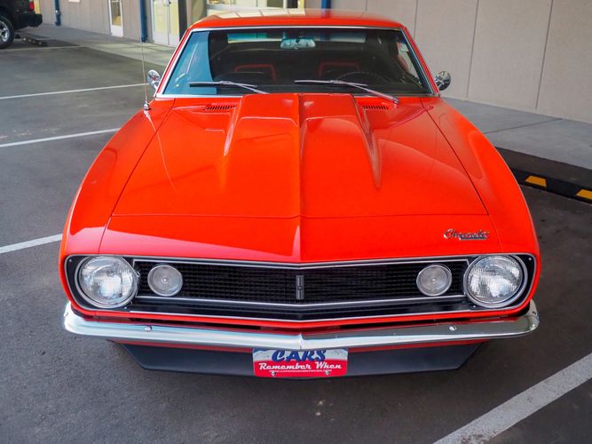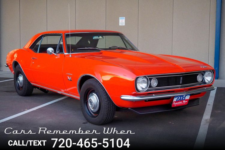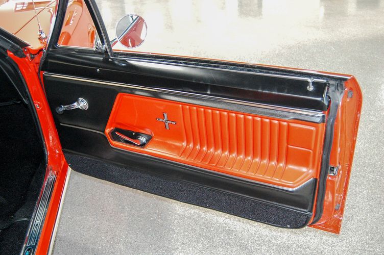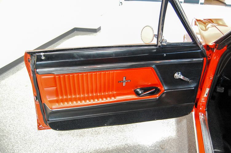 A concourse-level rotisserie restoration turned this Camaro into a top quality build with a stout 402ci power plant. Winner of the Colorado Camaro Club 1st place award in 2013 and included with the sale is the plaque and restoration photos. This car was personally rebuilt by an individual owner who did outstanding work on the car. The undercarriage is extremely clean and shows evidence of the rotisserie restoration. Painted a beautiful orange with a slight pearl gives it a showroom quality finish. With a rebuilt suspension, it rides smooth and every piece of rubber has been replaced. The interior has been completely reupholstered. Featuring black vinyl bucket seats with orange accents, a black dash and matching rear seats. With a fresh 402 big block Chevy mated to a 4 speed manual, the driving experience is top notch. The overall fit and finish of this restoration is top quality and one of the best in the dealership! Overall, if your looking for a 1st generation Camaro that drives like new, look no further!