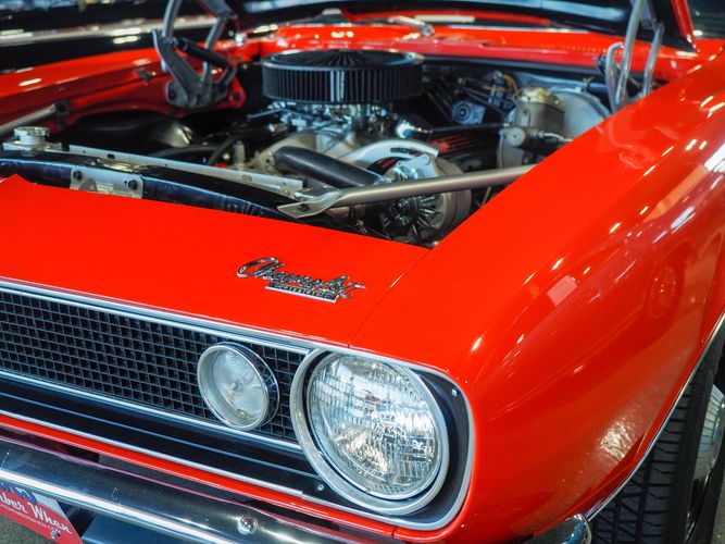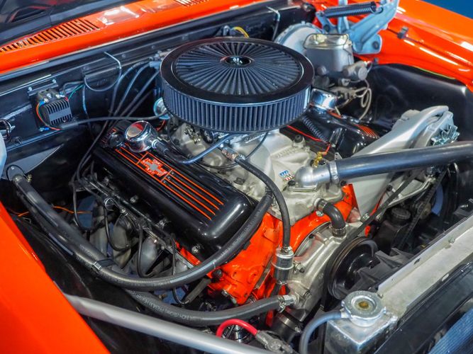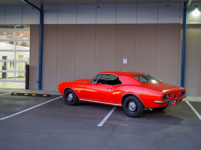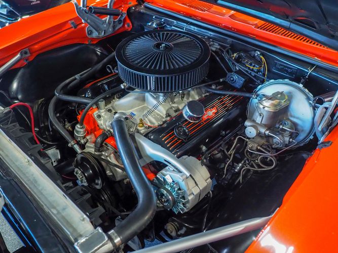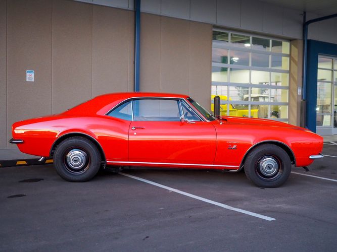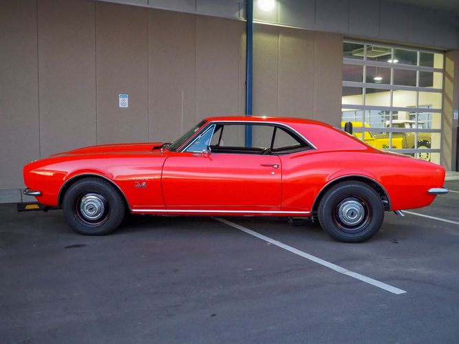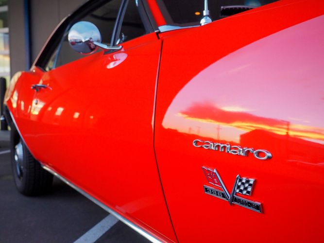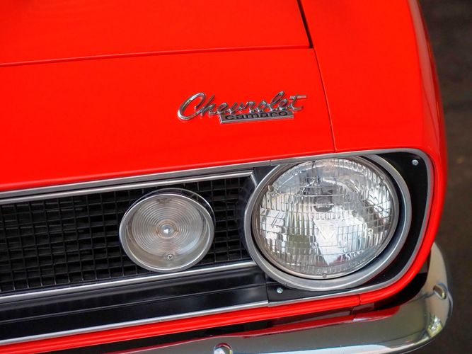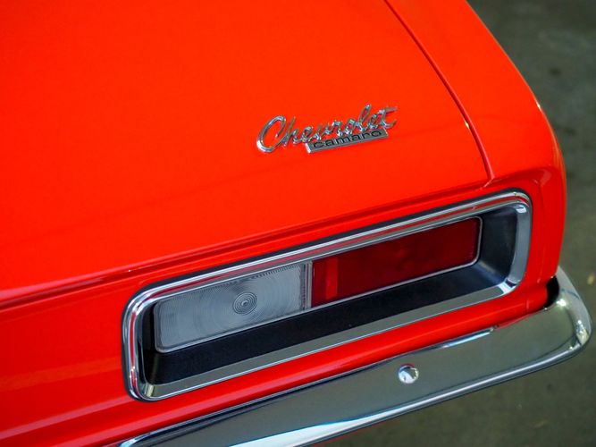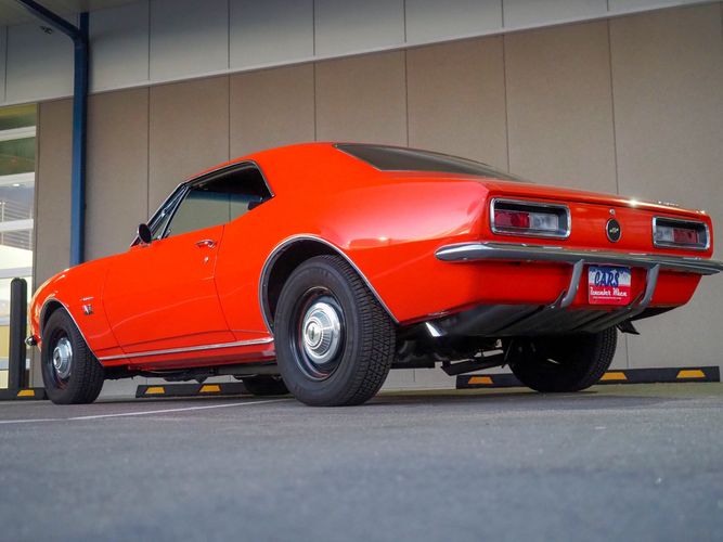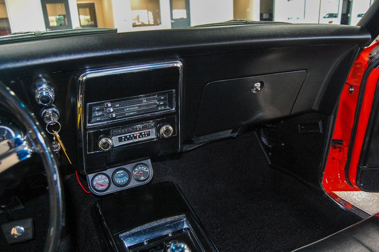 A concourse-level rotisserie restoration turned this Camaro into a top quality build with a stout 402ci power plant. Winner of the Colorado Camaro Club 1st place award in 2013 and included with the sale is the plaque and restoration photos. This car was personally rebuilt by an individual owner who did outstanding work on the car. The undercarriage is extremely clean and shows evidence of the rotisserie restoration. Painted a beautiful orange with a slight pearl gives it a showroom quality finish. With a rebuilt suspension, it rides smooth and every piece of rubber has been replaced. The interior has been completely reupholstered. Featuring black vinyl bucket seats with orange accents, a black dash and matching rear seats. With a fresh 402 big block Chevy mated to a 4 speed manual, the driving experience is top notch. The overall fit and finish of this restoration is top quality and one of the best in the dealership! Overall, if your looking for a 1st generation Camaro that drives like new, look no further!
