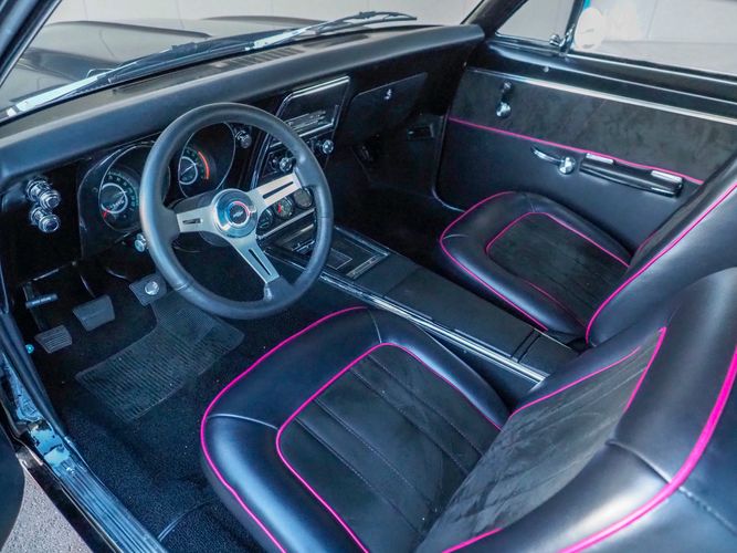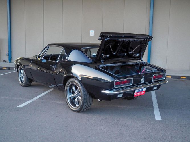 This incredible 1967 Chevrolet Camaro RS is an awesome restomod with lots of great features; a beautiful gloss black exterior, new black chrome wheels, a fresh 350 V8, 4-speed manual transmission, rack & pinion steering, and a custom front suspension and frame. This is a fairly new build and has less than 1,000 miles on it since it was completed. The aluminum headed 350 engine has a ton of power and sounds great through the custom exhaust system (see video on our website). Paired with a Muncie 4-speed makes this a very fun car to drive. The interior is freshly restored with all new upholstery, carpet, door panels, and a nice set of factory gauges with a tach. The undercarriage is fully restored with all new rubber. This Camaro looks sinister with the hidden headlights and 18'' black chrome wheels. Overall it has much more invested in it than the asking price and is ready to go. CALL TODAY 720-465-51043