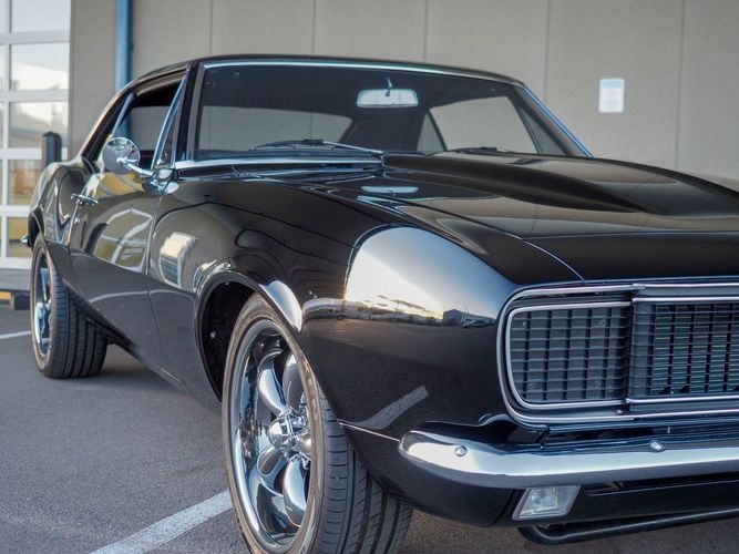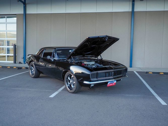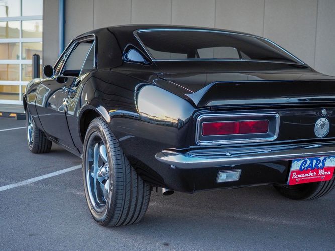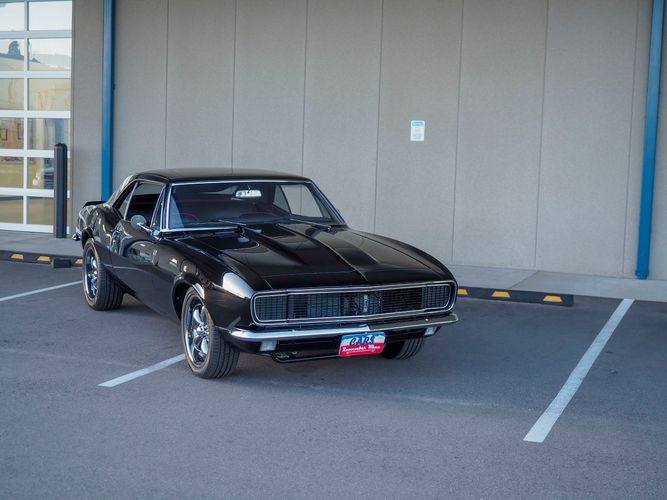 This incredible 1967 Chevrolet Camaro RS is an awesome restomod with lots of great features; a beautiful gloss black exterior, new black chrome wheels, a fresh 350 V8, 4-speed manual transmission, rack & pinion steering, and a custom front suspension and frame. This is a fairly new build and has less than 1,000 miles on it since it was completed. The aluminum headed 350 engine has a ton of power and sounds great through the custom exhaust system (see video on our website). Paired with a Muncie 4-speed makes this a very fun car to drive. The interior is freshly restored with all new upholstery, carpet, door panels, and a nice set of factory gauges with a tach. The undercarriage is fully restored with all new rubber. This Camaro looks sinister with the hidden headlights and 18'' black chrome wheels. Overall it has much more invested in it than the asking price and is ready to go. CALL TODAY 720-465-51043
