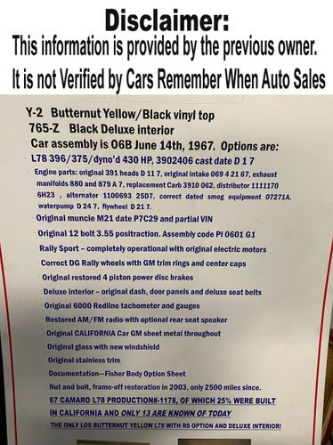 Cars Remember When Auto Sales offers the details of the vehicle in good faith but cannot guarantee the accuracy of the information nor warrant the condition of the vehicle. It is the buyer’s responsibility to verify the vehicle, look at the provided photographs/videos, ask questions, inspect, or preferably get a 3rd party opinion on the vehicle. All cars sold ‘as-is’ unless specifically stated otherwise. Prices do not include government fees and taxes, any finance charges, any electronic filing charge and any emission testing charge. Advertised pricing does include Dealer Handling charges. We update our website inventory frequently, but our inventory changes with recent sales. Mileage is read from the odometer, can not be proven unless stated otherwise.