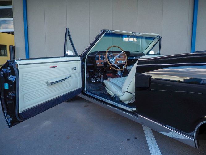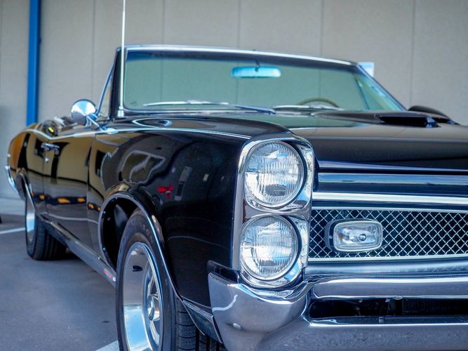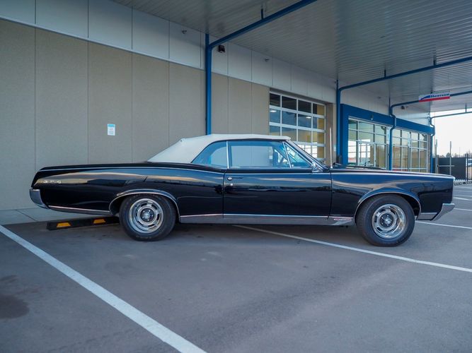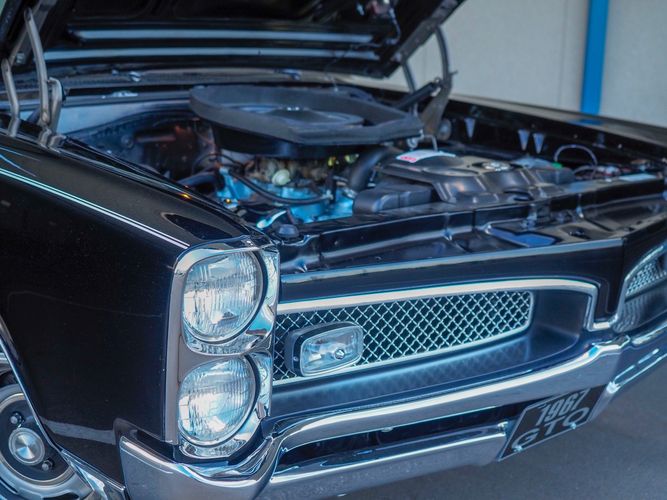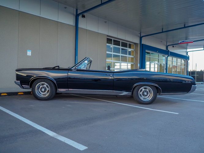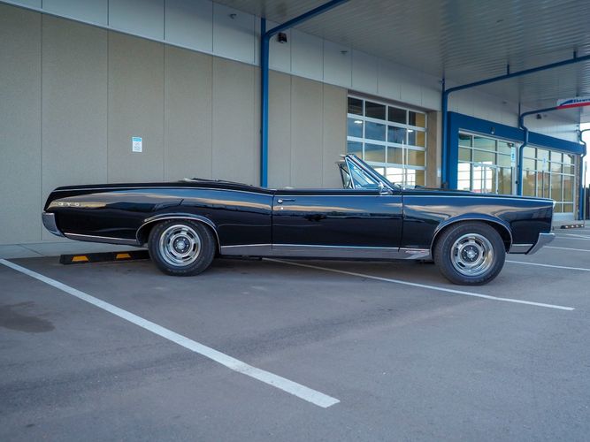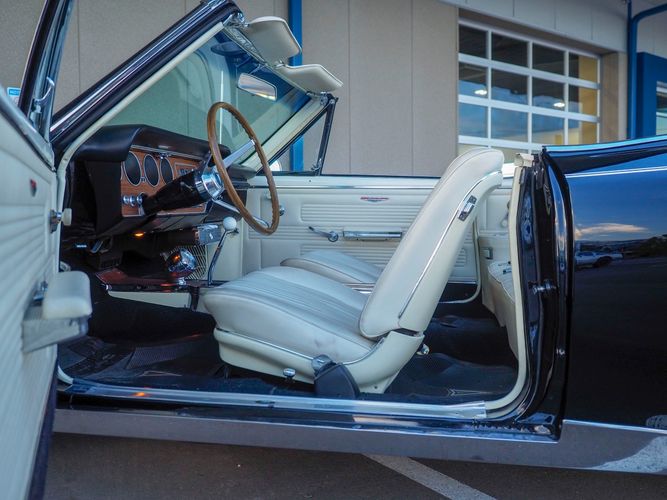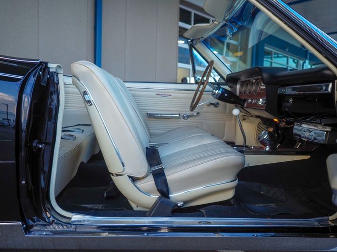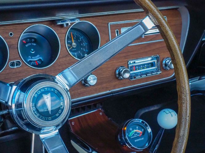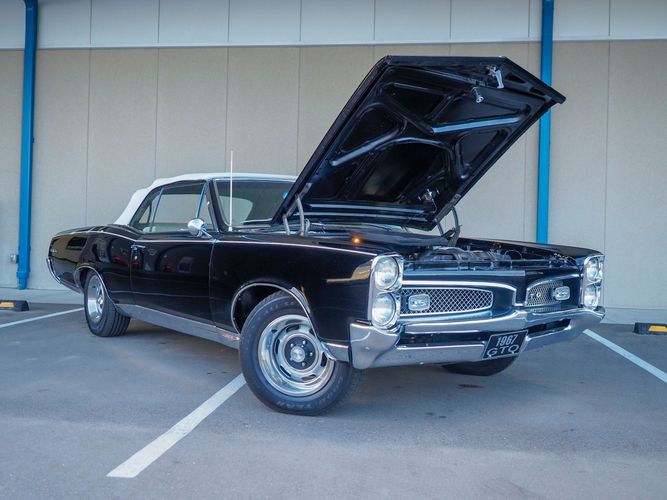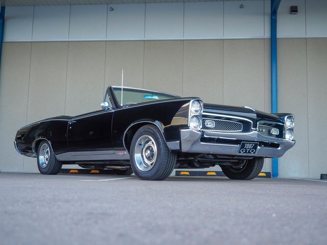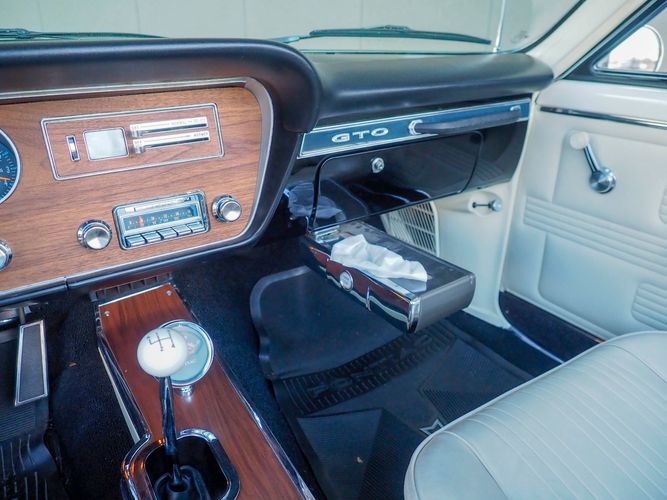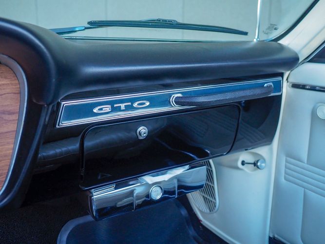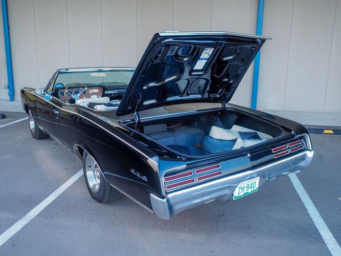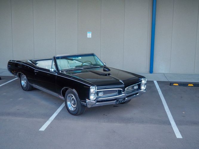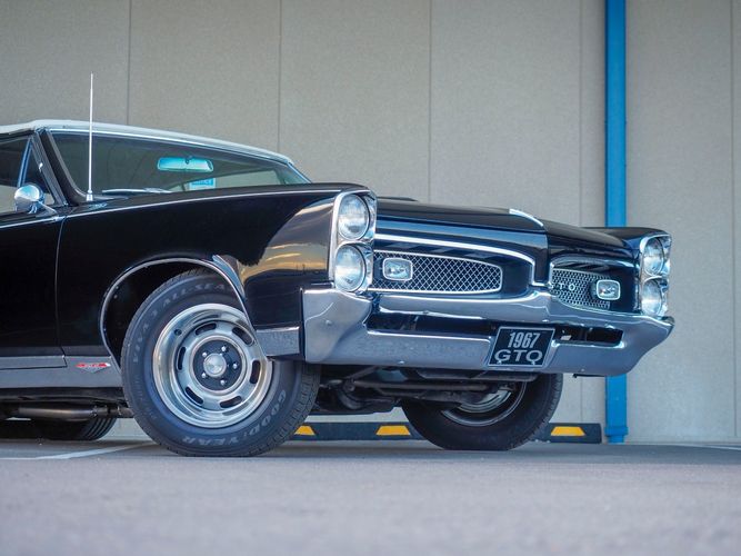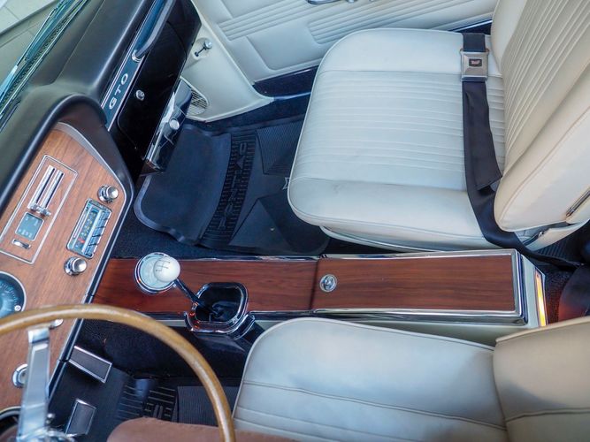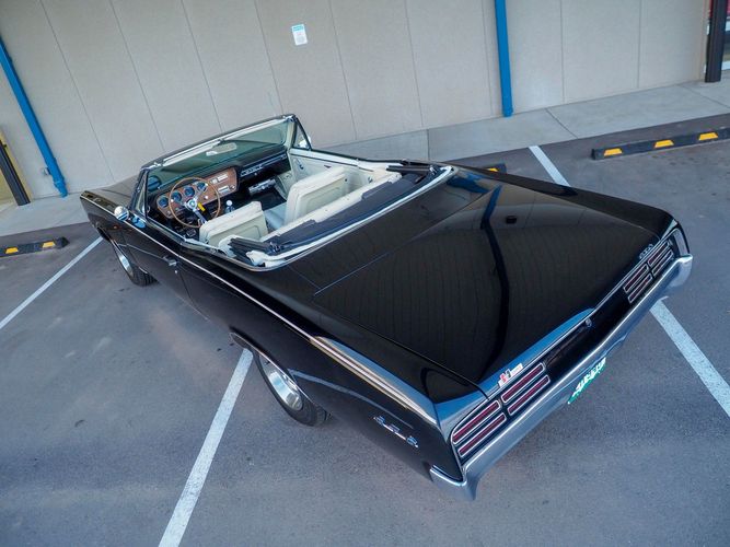 A real-deal 1967 Pontiac GTO with a 400 V8 and four-on-the-floor is already a desirable combo, but then you add it is a fully restored black on white convertible; it doesn't get much better than this! The Starlight black paint finish is in exceptionally good condition with a great shine to it. The body has very original sheet metal and is razor straight. Opening the door exposes the restored white vinyl bucket / console interior. Complete with wood-grain accents, rally gauges, push button radio and a console mounted vacuum meter. It is sporting its original style wheels and tire size.