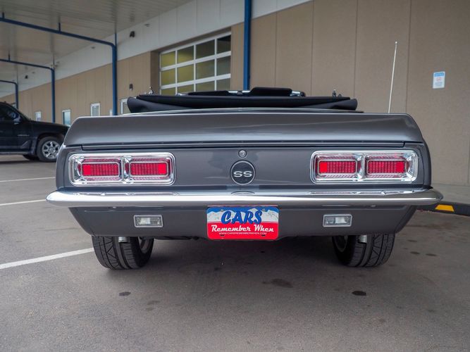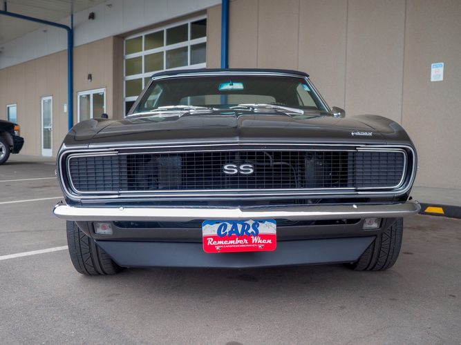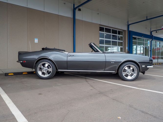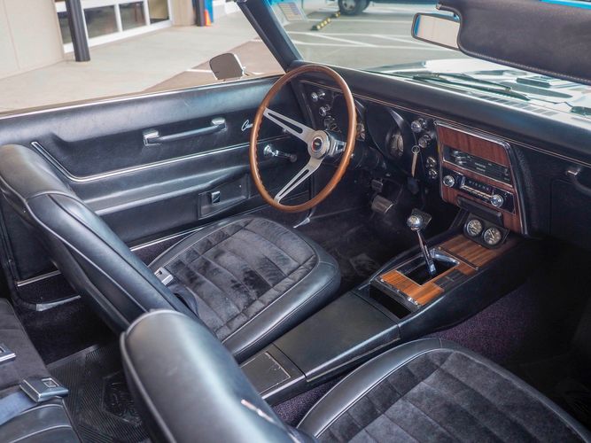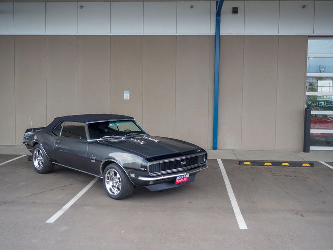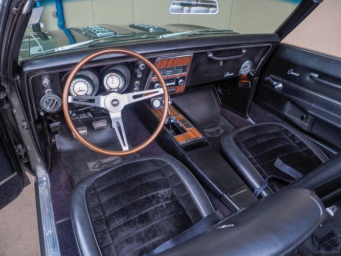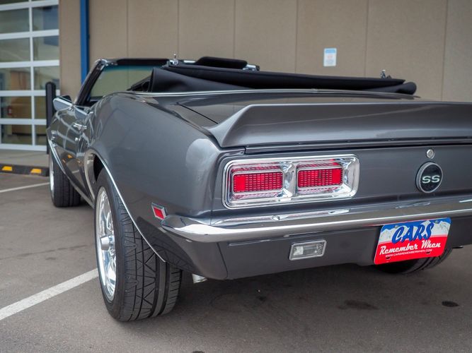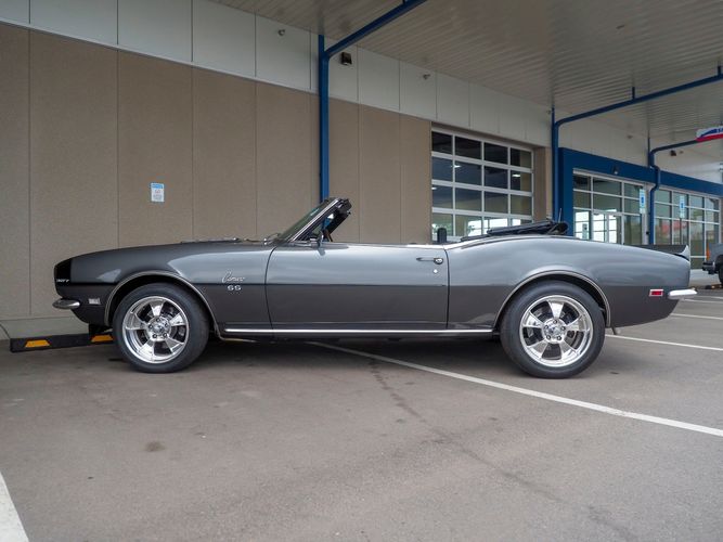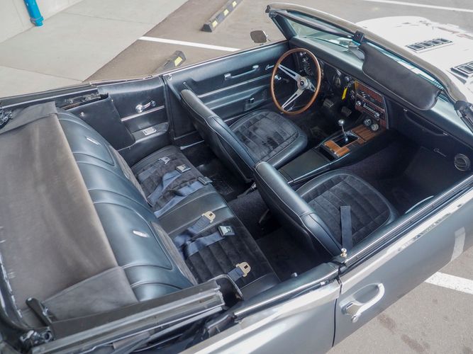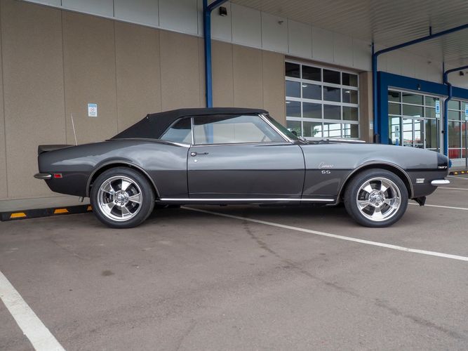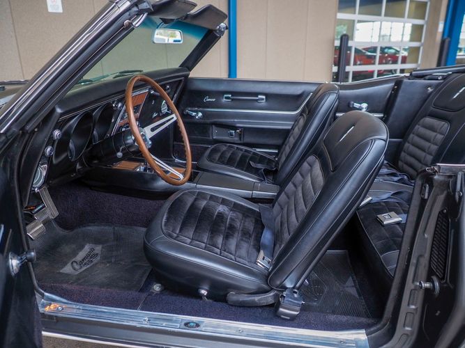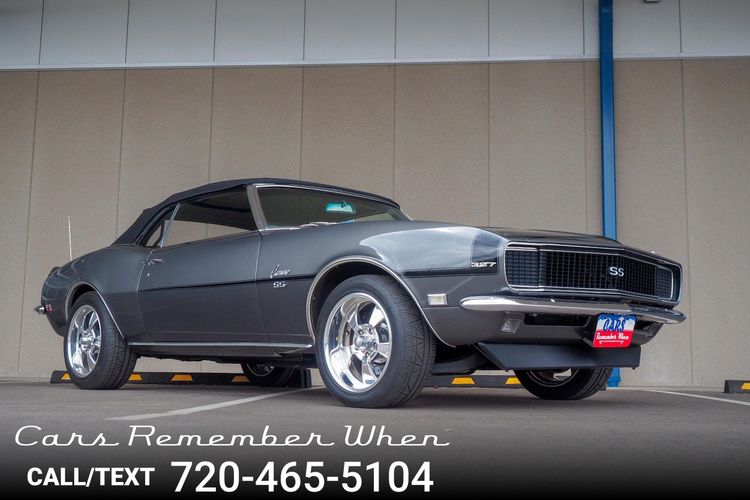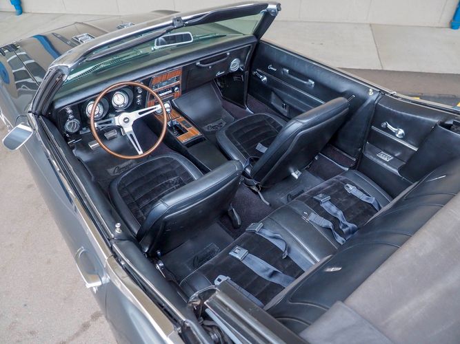 The paint, four-speed, rumbling exhaust, and iconic 327 small block V8 make this fully-built 1968 Chevrolet Camaro convertible an incredible driver. The paint colors are simply stunning and eye catching with the chrome accents. You can tell there was a nice investment to get this black and silver so smooth. Riding on front 17'' and rear 18'' chrome wheels give a nice stance and better handling with the low profile tires. 4-wheel power Wilwood disc brakes provide safe and fast stopping. Under the hood is a nicely detailed 327 V8 engine paired to a 4-speed manual transmission. This is a great cruiser Camaro with a nice idle exhaust lope and will cruise 70mph with low rpms. Power convertible top operates smooth and fast (see video) and the power steering is smooth as well. The undercarriage is fully restored with all new rubber and rides very smooth. Overall if you are looking for head turning, iconic classic Camaro look no further!