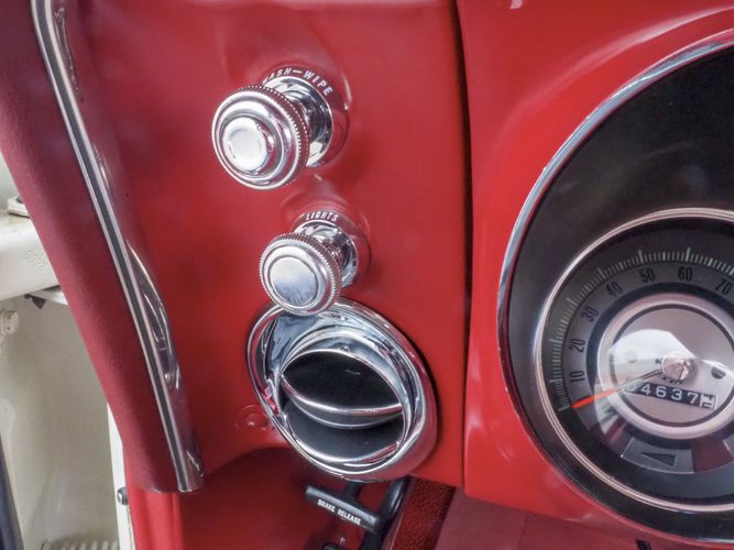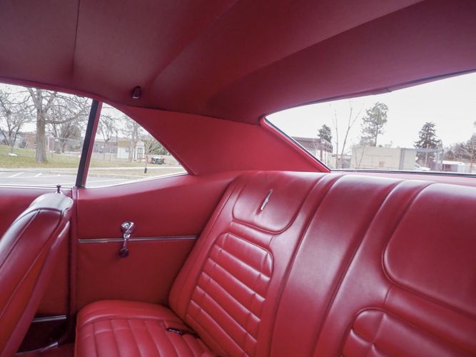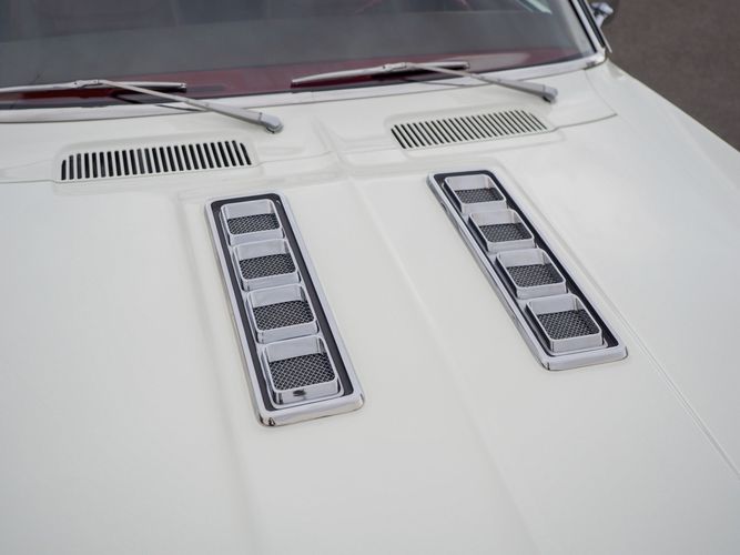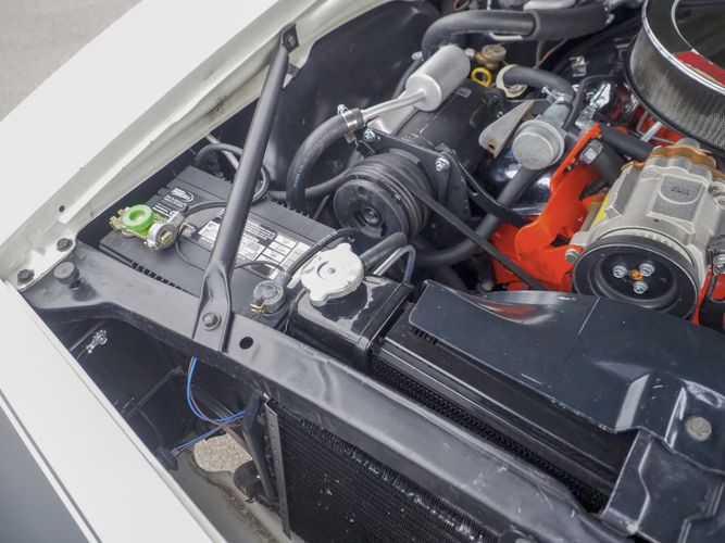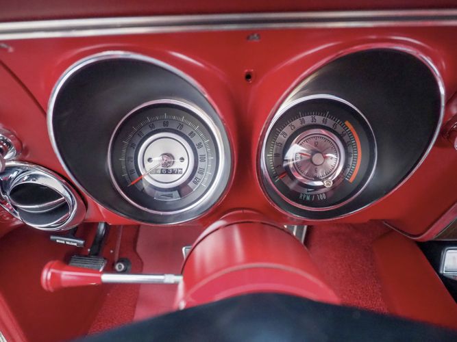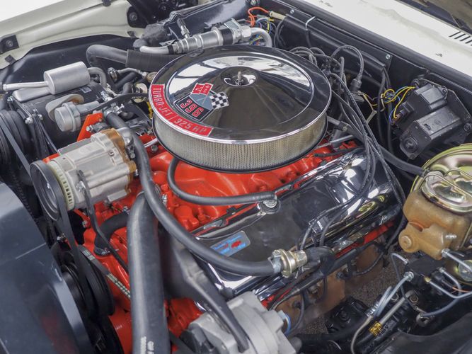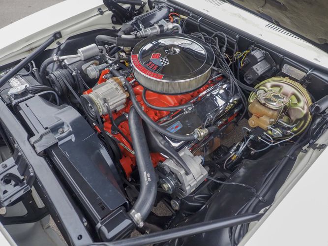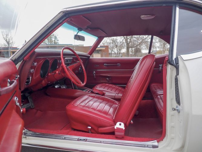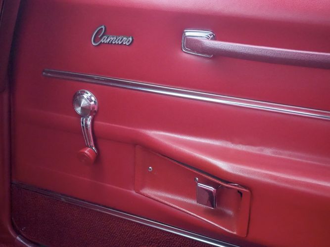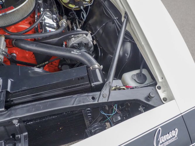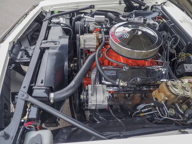 This Camaro appears to be highly optioned with a stunning red bucket seat console interior, deluxe interior, gauge package, factory A/C, and Ermine white with a black vinyl top. This car was reportedly sold new in California and does retain its original smog equipment. Other equipment includes power front disc brakes, power steering, and a TH400 automatic transmission.