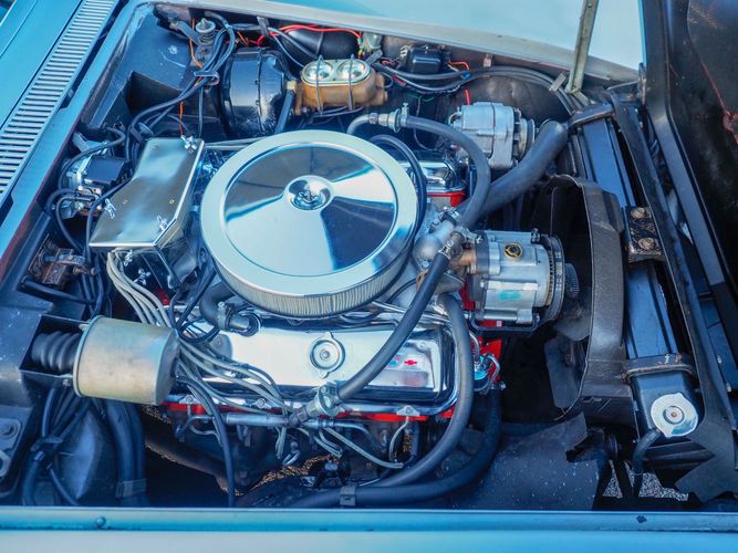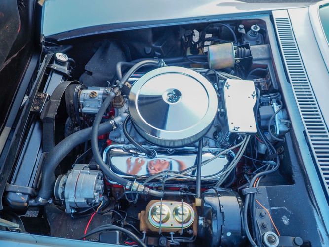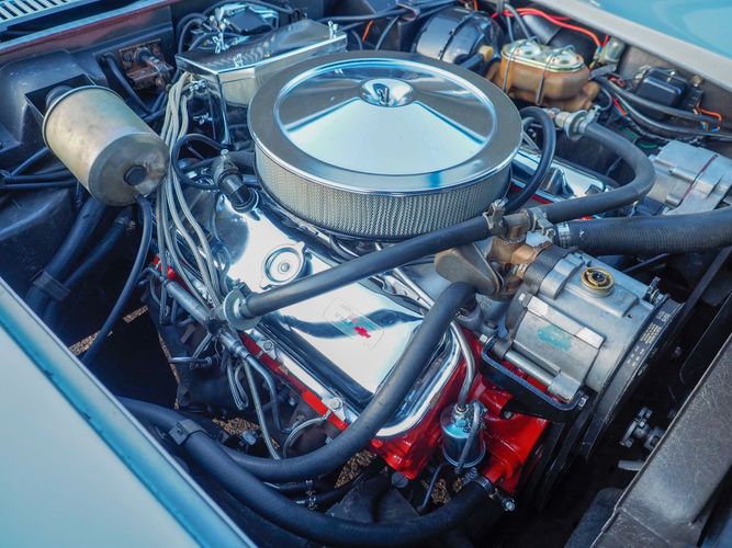 Upon our acquisition of this vehicle, it became apparent the previous owner was not running a zinc additive in the oil. Shortly after we bought it one of the cam lobes went flat. We pulled the engine and had it totally machined and rebuilt to stock specs. The only difference is we went to a modern hydraulic roller camshaft so zinc additive is no longer needed. The freshly rebuilt engine runs very strong and the Corvette rides very tight just like you would expect in a low mileage car. Both the engine, transmission and rear end appear to be numbers matching original.