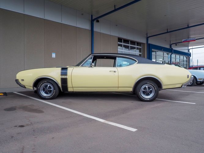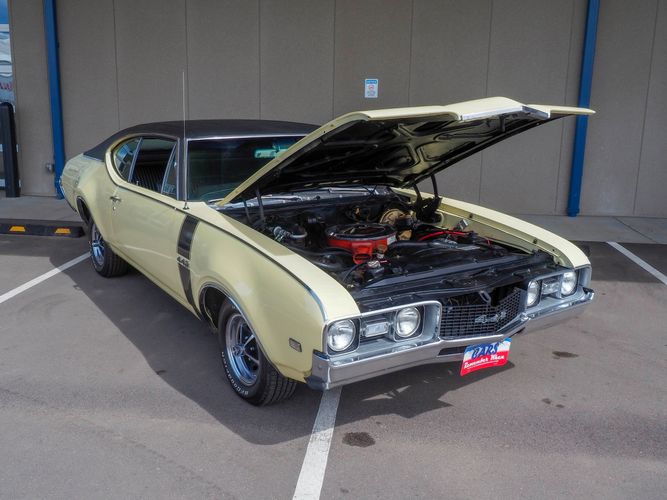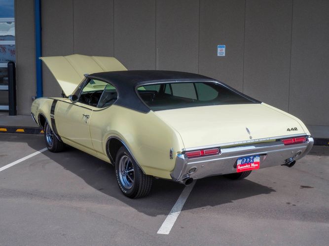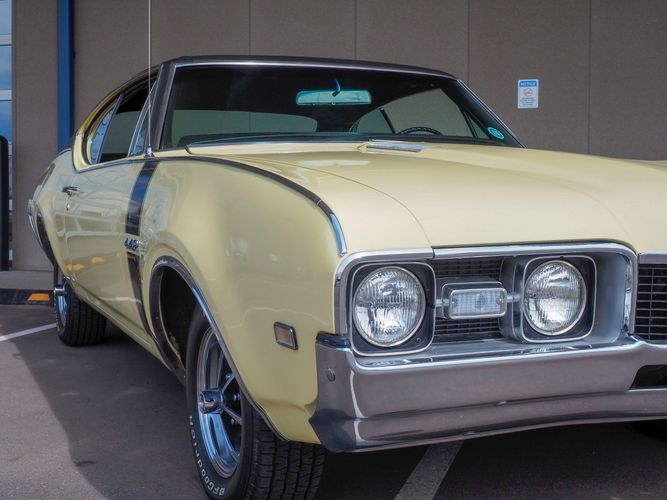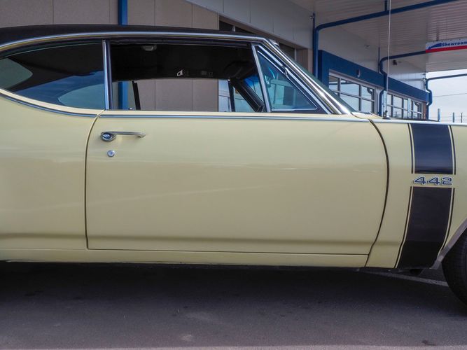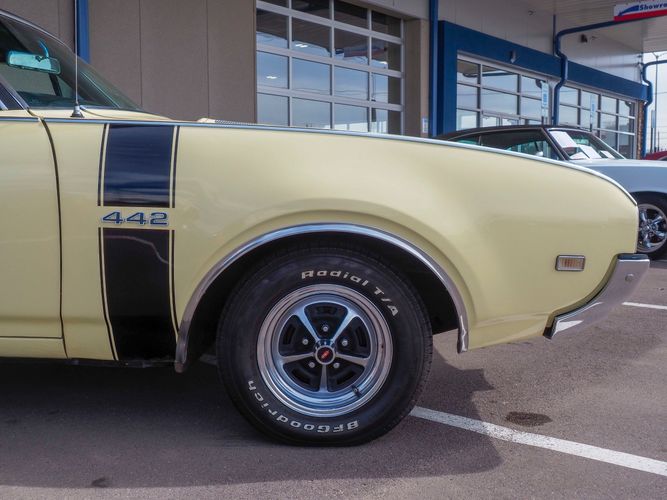 This 1968 Oldsmobile 442 is the real deal, numbers matching, original restored car! It has been restored to exact specifications as it was in 1968. Verifying the authenticity of this car, R.E Olds great grandchildren signed the car under the hood. All numbers matching with many original parts. The paint and interior are in car show condition and ready to be driven and enjoyed. The Saffron yellow repaint is gorgeous and shows how straight the original body panels really are! The black interior is nicely restored with new bench seat upholstery, carpet, door panels and a nicely detailed dash to top if all off. This 442 is well documented and included is the original owners manual, sales brochure, assembly manual and documentation regarding the engine rebuild and restoration process. The undercarriage is very original and has all new rubber, shocks and springs. It stops straight, and cruises straight down the road. Being a very unique, and a rare sight to see means you will get lots of compliments. Remember the Oldies? Well, here is your opportunity to live the happy memories of days gone by!