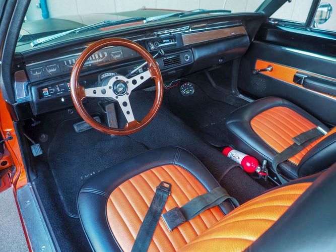Up for sale is a freshly restored 1968 Plymouth Satellite equipped with a strong 440 cubic inch V8, power steering, power brakes, and a fresh bright orange paint job. This car is the ultimate driver Mopar with lots of low-end 440 torque. Straight solid body, good door fitment, and a nice set of wheels with radial tires make this a great driver you can just hop in and go. The bucket seat interior is nicely restored, comfortable and very spacious. Orange seat inserts match the exterior nicely. Equipped with an aftermarket radio makes it convenient to listen to anything while driving. Clean undercarriage with lots of new front suspension parts; front disc brake and spindle kit, ball joints, and steering components. New shocks all the way around. Overall, this is a solid 440 Mopar driver that is ready to go! CALL TODAY 720-465-5104
