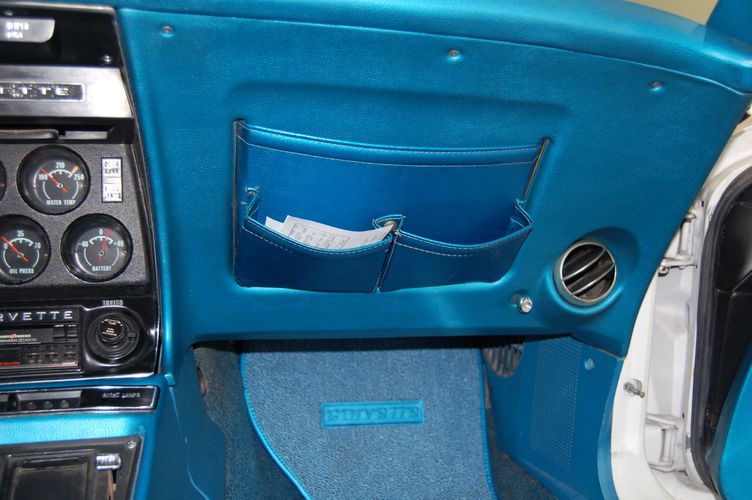 For the new C3 generation, both the Corvette body and interior were completely redesigned. As before, the car was available in either coupe or convertible models, but coupe was now a notchback fitted with a near-vertical removable rear window and removable roof panels (T-tops). A soft folding top was included with convertibles, while an auxiliary hardtop with a glass rear window was offered at additional cost. Included with coupes were hold down straps and a pair of vinyl bags to store the roof panels, and above the luggage area was a rear window stowage tray. The enduring new body's concealed headlights moved into position via a vacuum operated system rather than electrically as on the previous generation, and the new hide-away windshield wipers utilized a problematic vacuum door. The door handles were flush with the top of the doors with a separate release button. Front fenders had functional engine cooling vents. Side vent windows were eliminated from all models, replaced with "Astro Ventilation", a fresh air circulation system. In the cabin, a large round speedometer and matching tachometer were positioned in front of the driver. Auxiliary gauges were clustered above the forward end of the console and included oil pressure, water temperature, ammeter, fuel gauge, and an analog clock. A fiber-optic system appeared on the console that monitored exterior lights and there was no glove box. The battery was relocated from the engine area to one of three compartments behind the seats to improve weight distribution. New options included a rear window defroster, anti-theft alarm system, bright metal wheel covers, and an AM-FM Stereo radio. All cars ordered with a radio, like the C2 cars, continued to be fitted with chrome-plated ignition shielding covering the distributor to reduce interference.