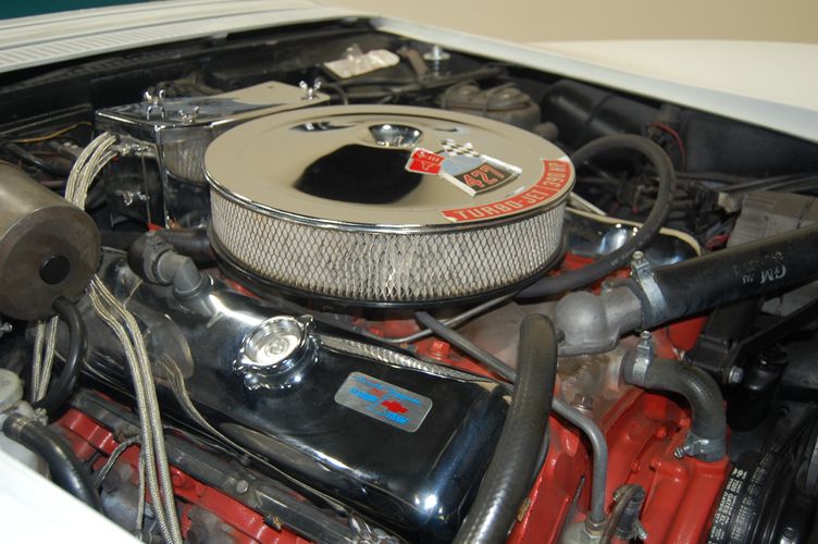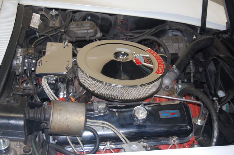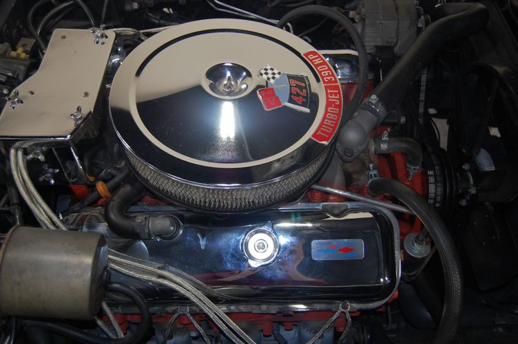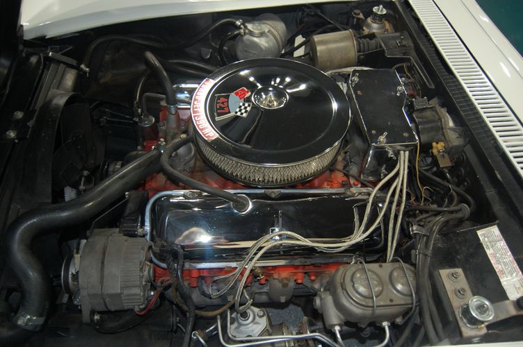 The chassis was carried over from the second generation models, retaining the fully independent suspension (with minor revisions) and the four-wheel disc brake system. The engine line-up and horsepower ratings were also carried over from the previous year as were the 3 and 4-speed manual transmissions. The new optional Turbo Hydramatic 3-speed automatic transmission (RPO M40) replaced the two-speed Powerglide. The L30, a 327 cu in (5.4 L) small-block V8 engine rated at 300 hp and a 3-speed manual transmission were standard, but only a few hundred 3-speed manual equipped cars were sold. The 4-speed manual was available in M20 wide-ratio or M21 close-ratio transmission versions. The M22 “Rock Crusher”, a heavy duty, close-ratio 4-speed gearbox, was also available for certain applications. The engine line-up included the L79, a 350 hp high performance version of the 327 cu in (5.4 L) small-block. Also available were several variants of the big-block 427 cu in (7.0 L) V8 engine, that taken together made up nearly half the cars. There was the L36, a 390 hp version with a Rochester 4-barrel carburetor; The L68, a 400 hp motor with a Holley triple 2-barrel carb set up (3 X 2 tri-power); The L71, generating 435 bhp at 5,800 rpm and 460 lb?ft at 4,000 rpm of torque also with a tri-power; The L89 option was the L71 engine but with much lighter aluminum cylinder heads rather than the standard cast iron. Then there was the L88 engine that Chevrolet designed strictly for off-road use (racing), with a published rating of 430 hp, but featured a high-capacity 4-barrel carb, aluminum heads, a unique air induction system, and an ultra-high compression ratio (12.5:1). All small block cars had low-profile hoods. All big block cars had domed hoods for additional engine clearance with twin simulated vents and “427” emblems on either side of the dome. The new seven-inch wide steel wheels had F70x15 nylon bias-ply tires standard with either white or red stripe tires optional.