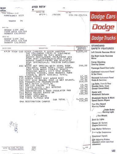 1 Family owned 1969 Dodge Charger "White Hat Special"