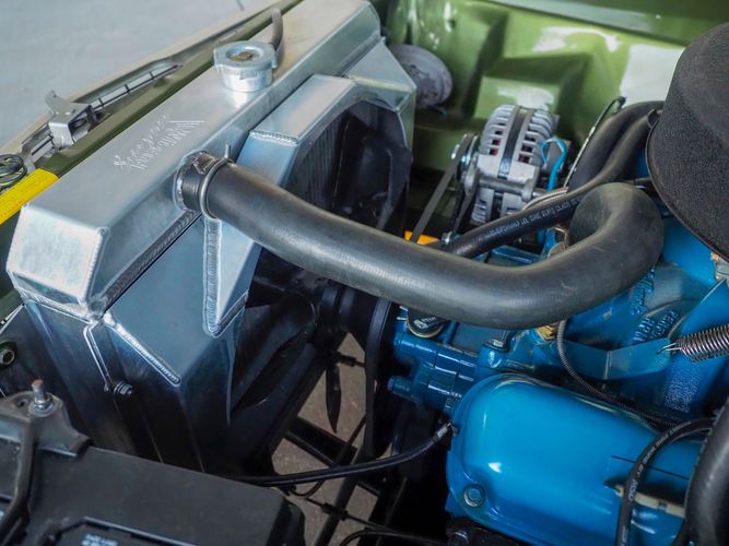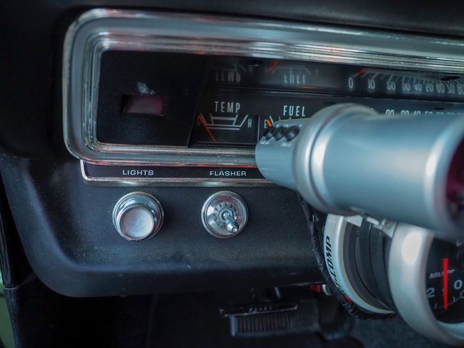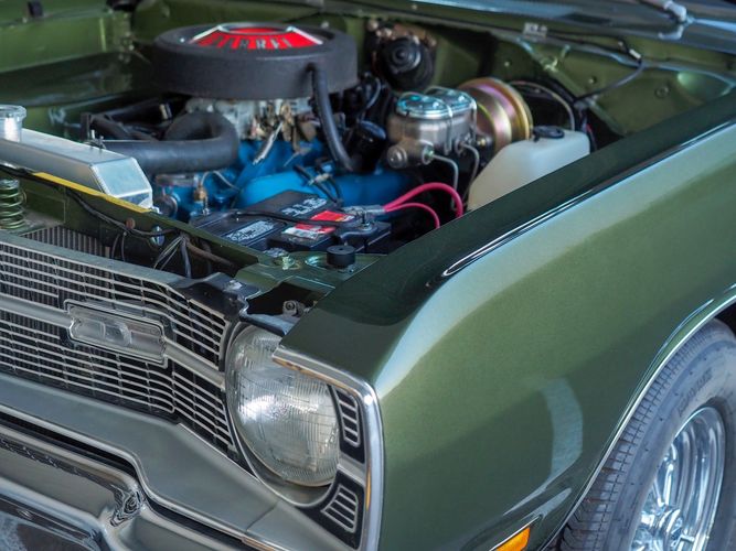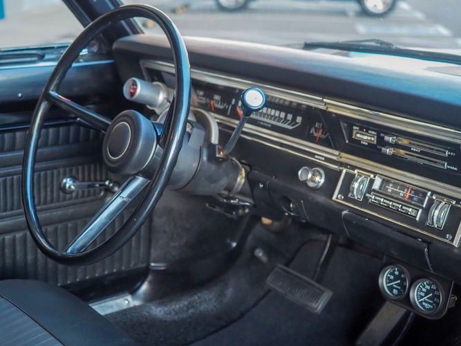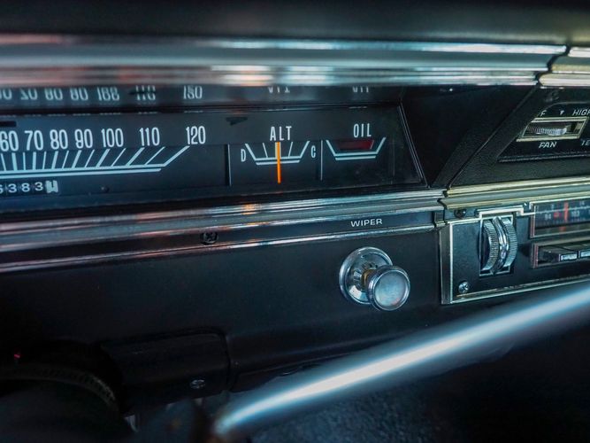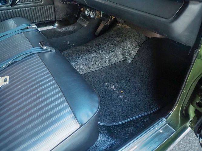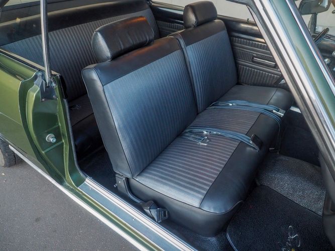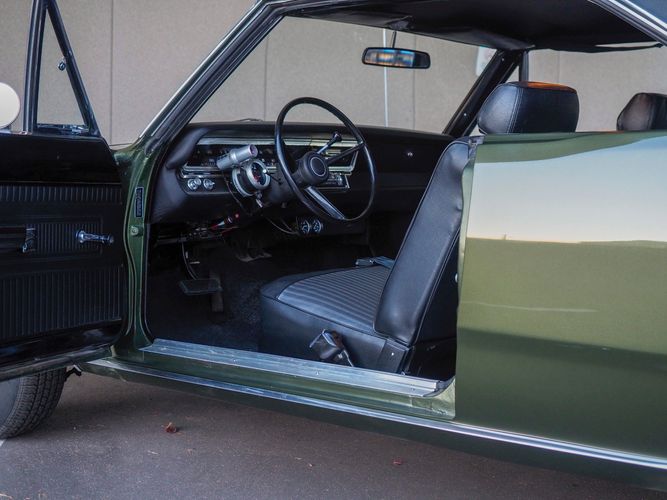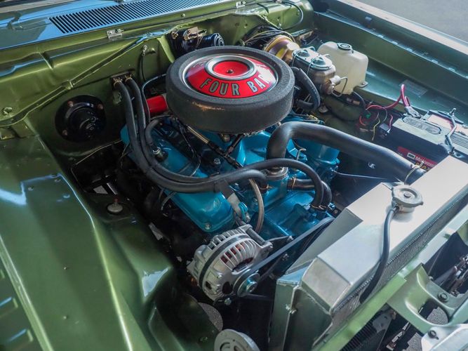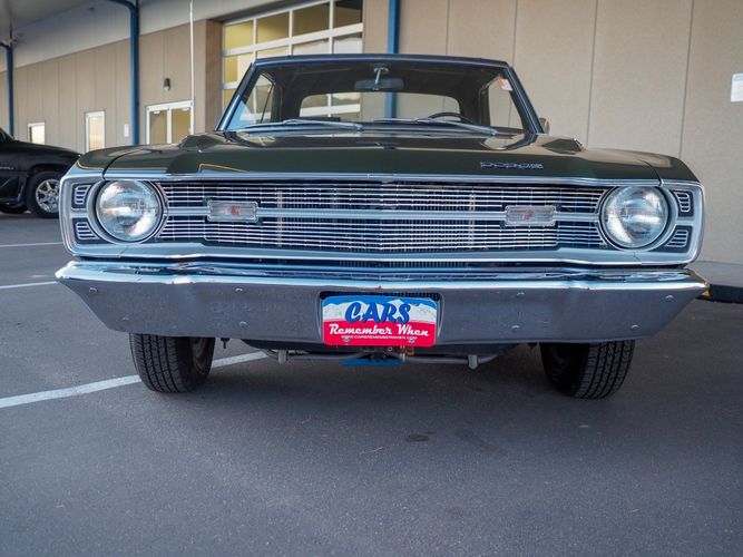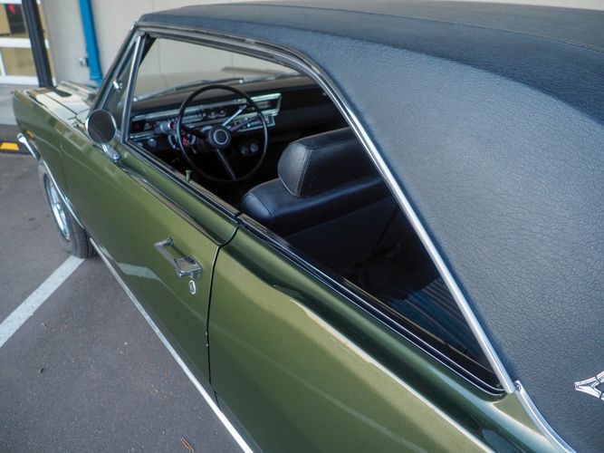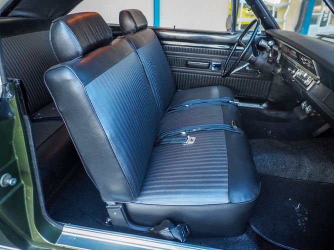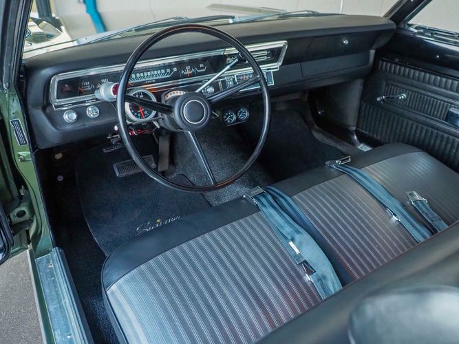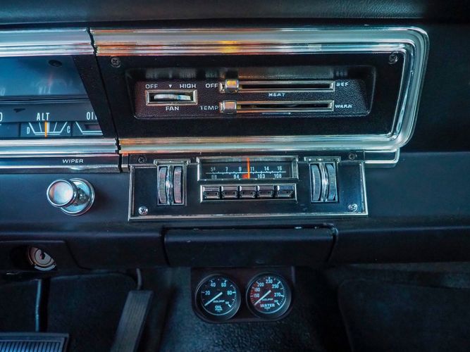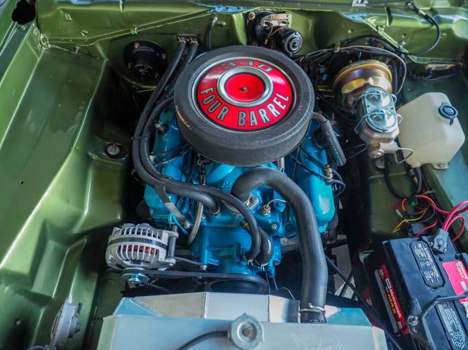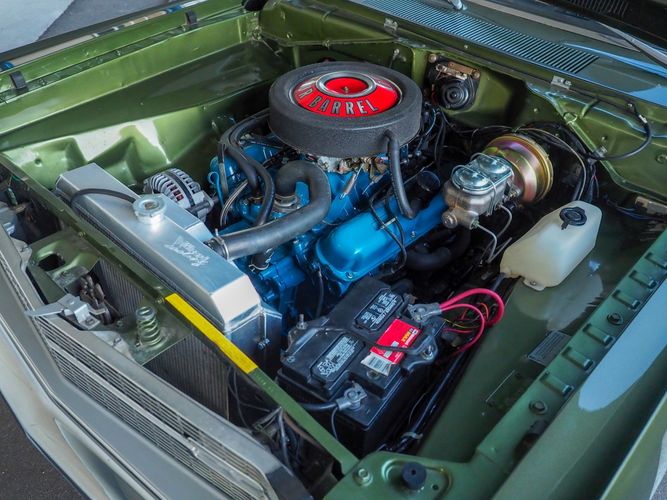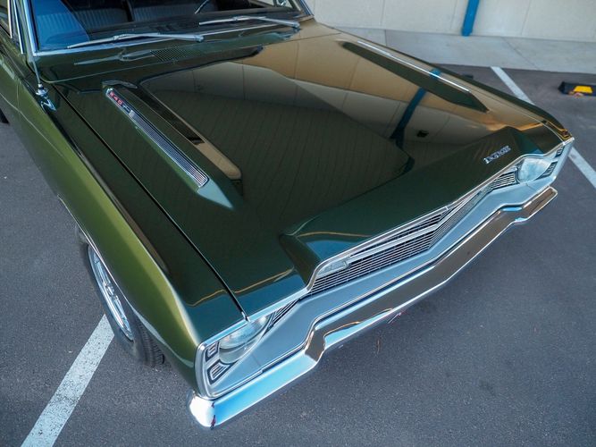 This Dart underwent a complete restoration and now stunts a beautiful forest green exterior with a black vinyl top. The body is very straight and sports a great stance. All the chrome bumpers and trim are in great condition. The interior is nicely restored with new seat upholstery, headliner, seat belts and door panels. The dash is nicely detailed and includes a nice original radio, climate control system and gauges. The interior is very roomy and comfortable overall for cruising to car shows or just around town!
