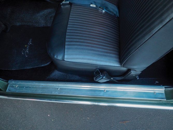 Under the hood is really where the magic happens. A very clean engine bay featuring a 360 cubic inch V8 with a mild cam, Holley 4 barrel paired to an automatic Torqueflite transmission. This car was built as a weekend warrior or for mild drag racing. The light weight body is perfect for this drivetrain. The throttle response is excellent; as soon as you put your foot down the car launches forward. The suspension is holding all new rubber, springs and shocks. The driving experience is great and will make any driver smile ear to ear when behind the wheel. Overall, if your looking for a fun, fast Mopar with a stout powerplant and a chassis to harness all the raw power, this Dart Swinger tribute is for you!
