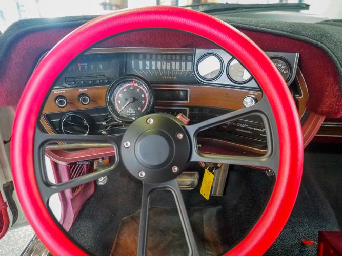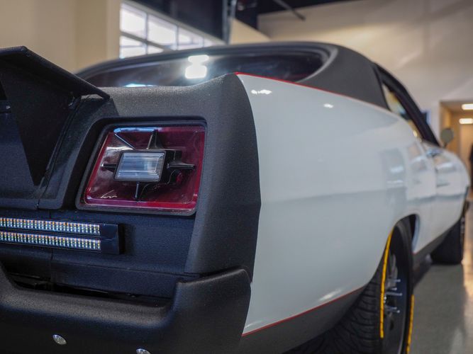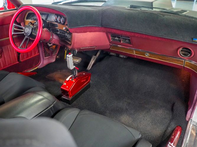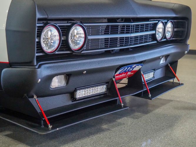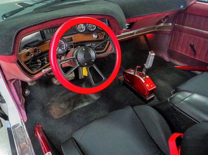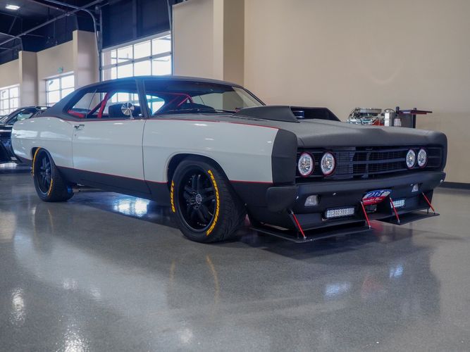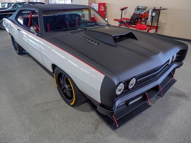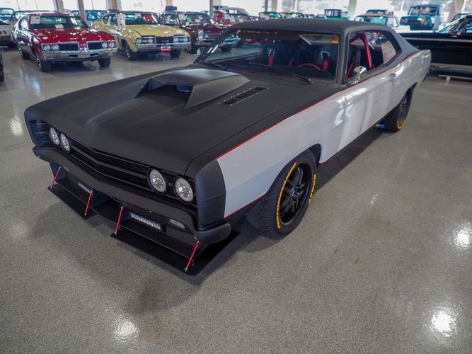 This 1969 Ford Galaxie 500 is far from stock! This car has underwent an entire drivetrain and suspension rebuild to set the car up for mild road racing and drag racing. The exterior is finished in a black Raptor liner that gives it a rigid toughness that can't be scratched or chipped by rocks. The sides are done in a nice white finish with red pin stripping separating the two colors. The built 445 FE motor sounds great, has plenty of torque and is insanely fun to drive and work on. Electric exhaust cut outs are a nice added touch to really let the motor breath. Overall, the car rides really smooth and handles great. The front red halo lights are a nice added touch and give this Galaxie a mean stance. The added ratchet shifter is fun to slap into gear as the big 445 propels you forward. The roll cage has been welded in for added safety and the bucket seats are very comfortable and hold you in the car nicely. If you are looking for a fast, powerful, heading turning car look no further then this Galaxie!