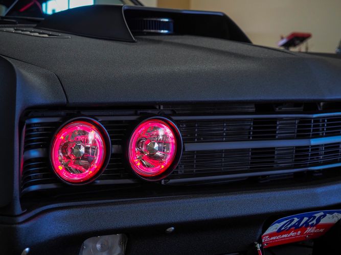 - Custom red halo headlights and LED fog lights