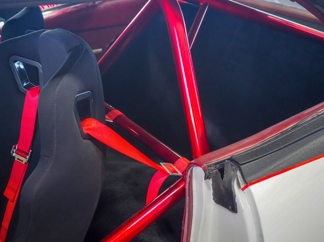 - Custom racing bucket seats and 4 point harness