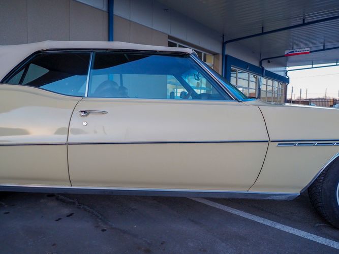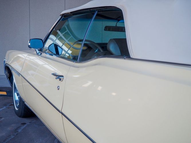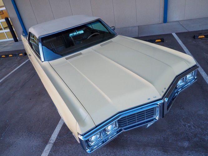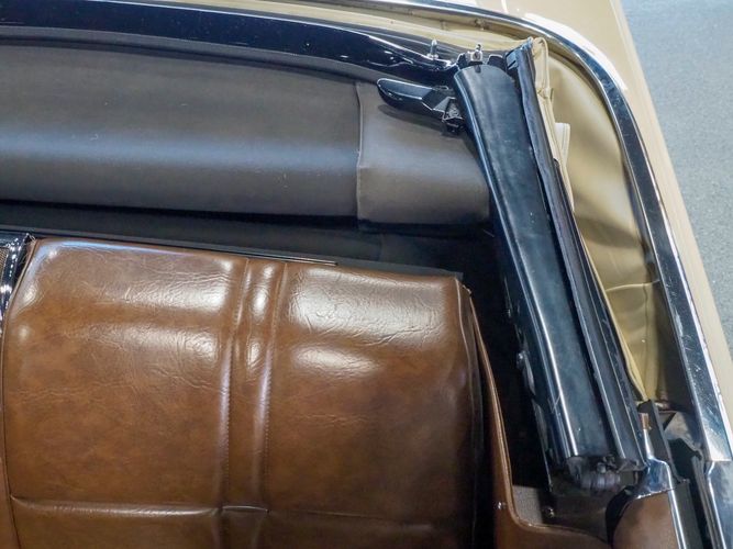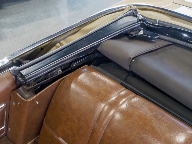 This Buick is sporting it's factory original Bamboo Cream paint in excellent condition for its age. There are some minor chips along the front of the hood from small rocks over the years, but they were touched up accordingly. Believe it or not, this convertible still has it factory-installed original canvas top in excellent condition. Almost looks the same as it did new, always being stored in the upright position to avoid getting creases. Opening the door exposes the unrestored original Burnished Saddle interior. This interior is breathtakingly comfortable and well preserved. The dash is free of any cracks and is just out right beautiful. All the gauges work flawlessly, the electric windows work great, power adjustable seat moves smoothly, and the power convertible top goes up and down with ease. One word to describe this interior is immaculate.