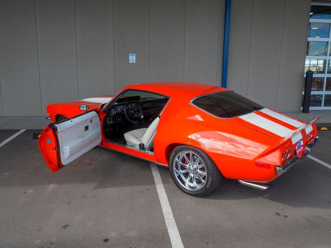 This is your chance to snatch up a beautifully built 1970 split-bumper Camaro. Offered by Cars Remember When is this one of one Hugger orange pro-touring beast. Equipped with a modern LS1 engine, Tremec 6-speed manual, cold A/C, power windows/locks, and a tubular front suspension. The overall fit and finish is top notch and the car has an incredible feel and sound. The doors close nicely (which is rare with the large 2nd generation Camaro doors) the interior is roomy and fully reupholstered, as well as an incredibly clean undercarriage that shows little signs of even being on the road. You would be hard pressed to find another Camaro this nice for less.