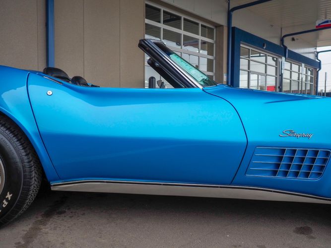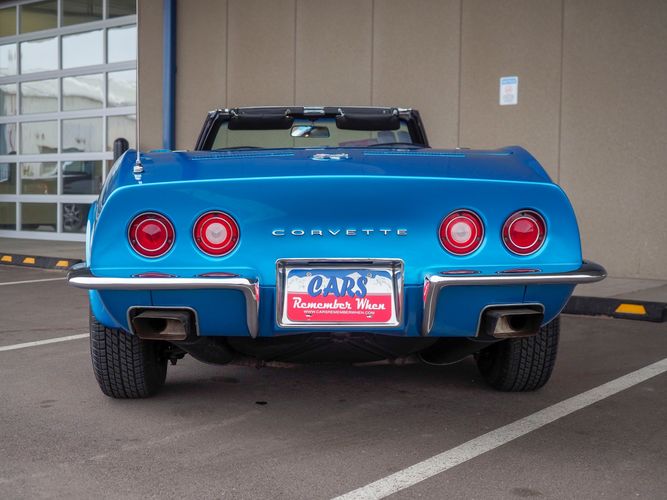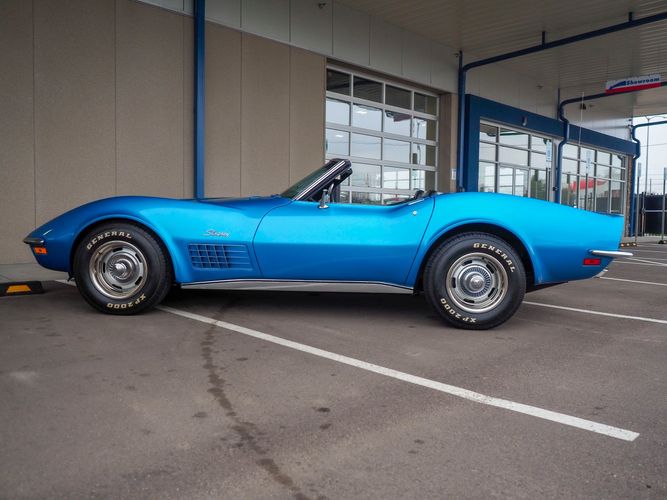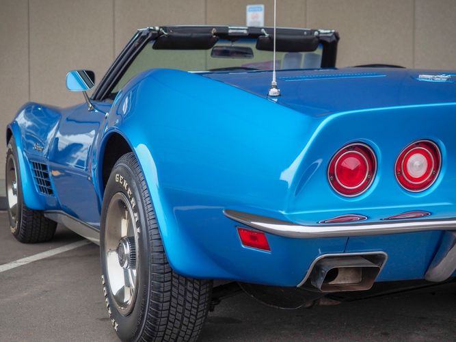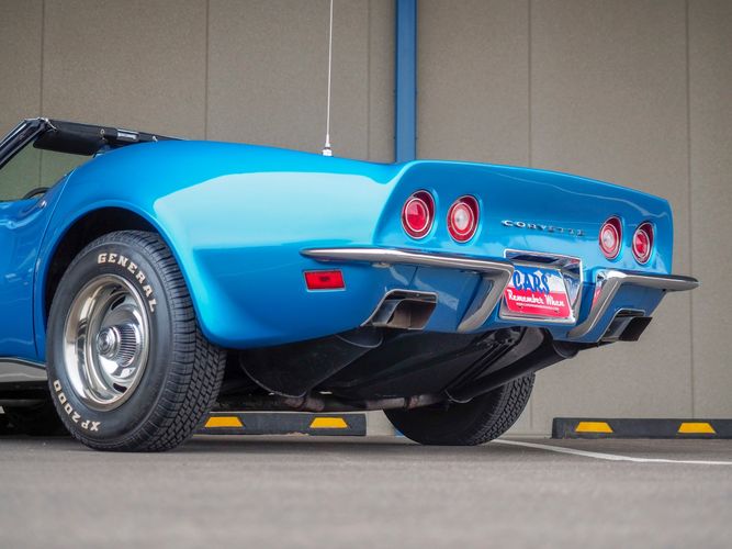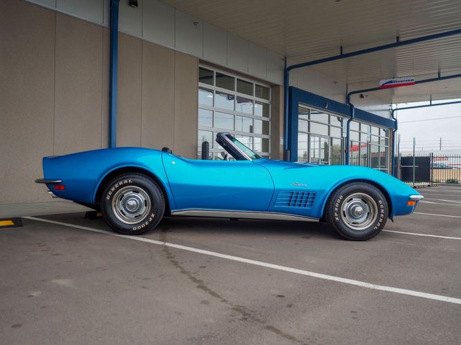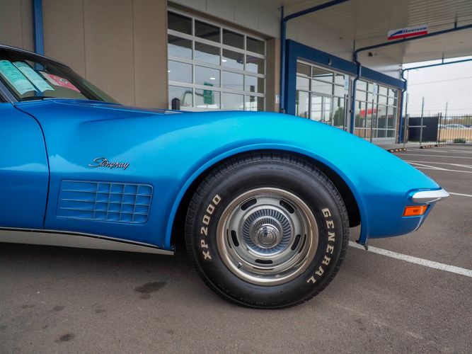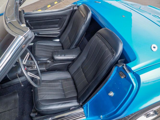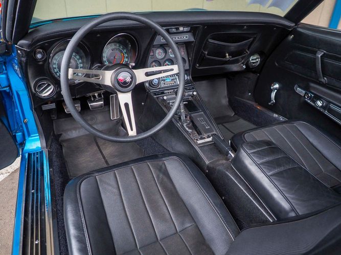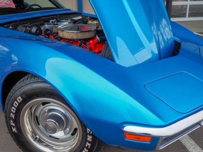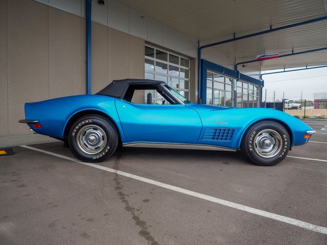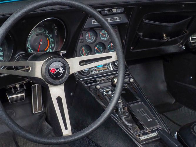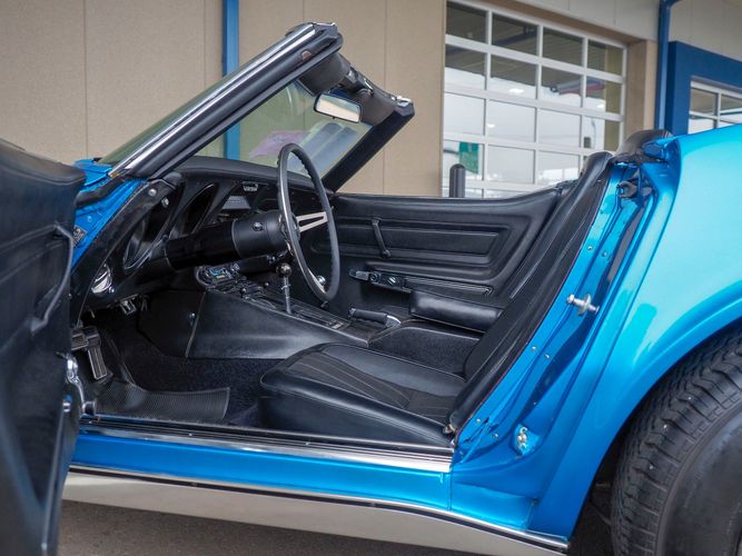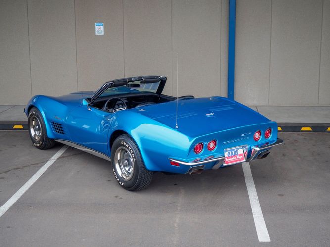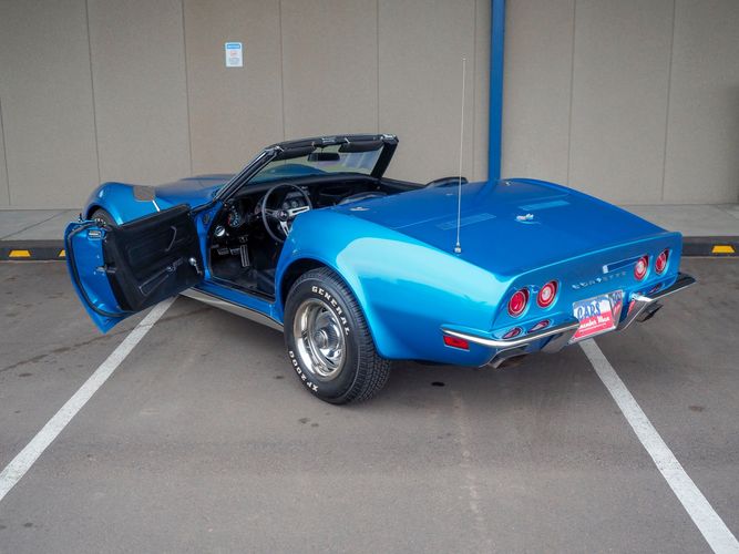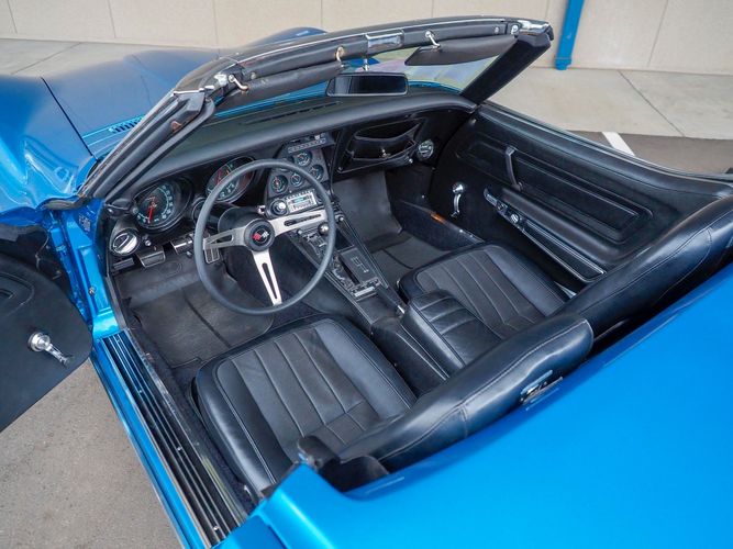 There's a Corvette for every enthusiast, so if you're the kind of guy who prizes originality, performance, and an awesome history, perhaps this 1970 Chevrolet Corvette will talk to you. Finished in a stunning Mulsanne blue and riding on original style wheels makes an excellent representation of an original 1970 Corvette convertible complete with the matching hardtop and a new black soft-top. Black vinyl interior is lightly restored with what appears to be new carpet and seat covers and then a very original dash, door panels and console that are in excellent condition for their age. All the gauges work as indented and so does the clock! Overall a very comfortable interior complete with the original center horsepower call-out.