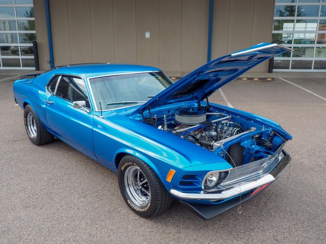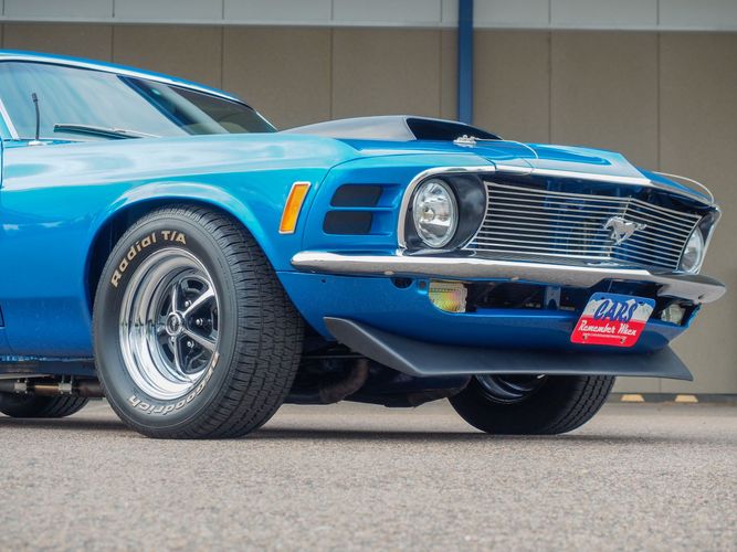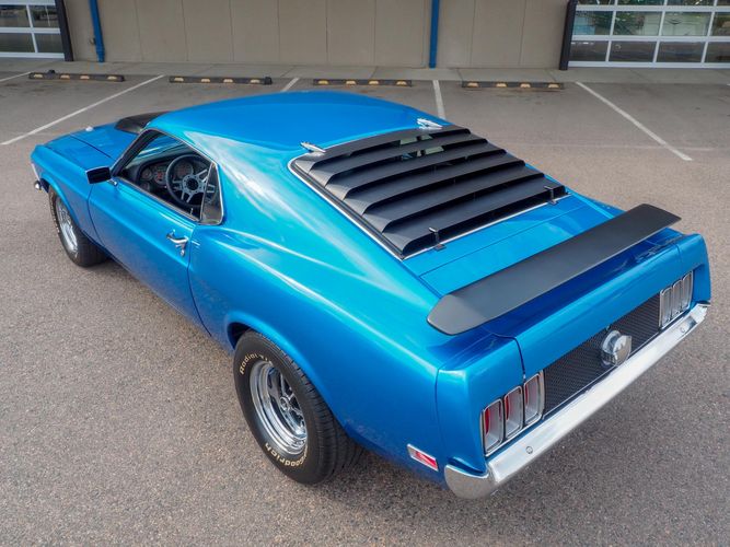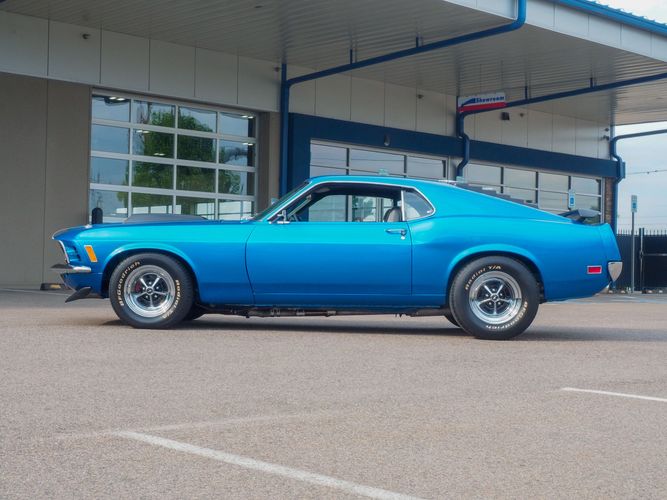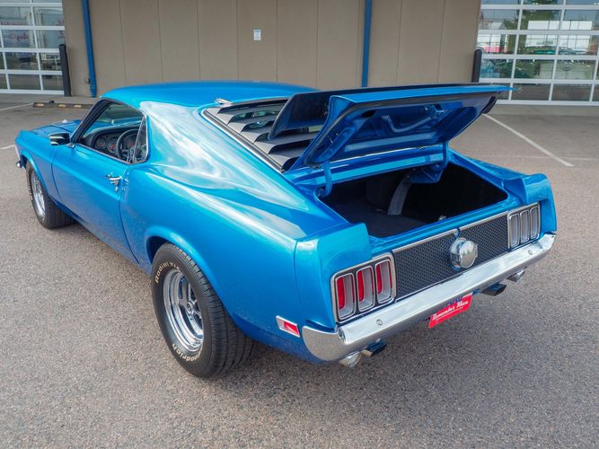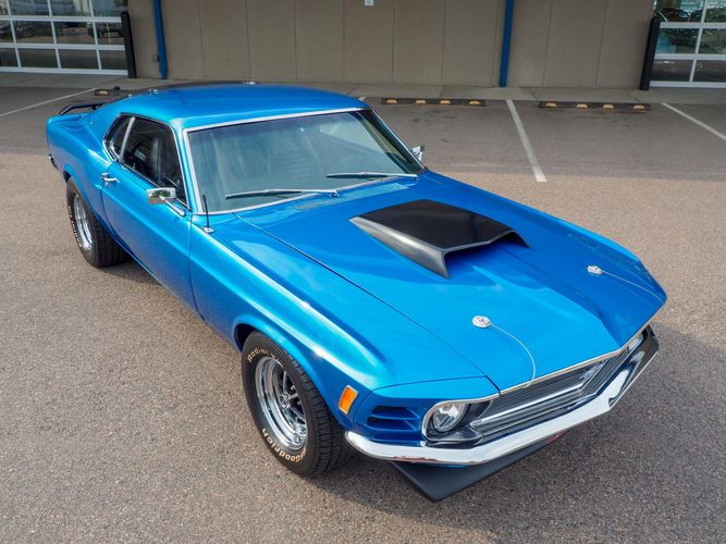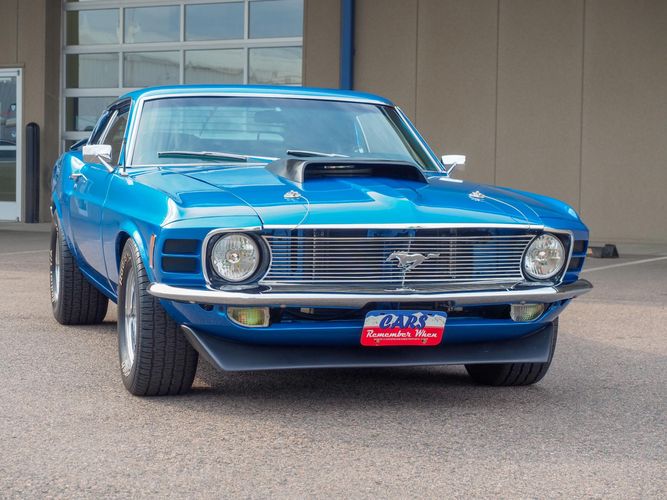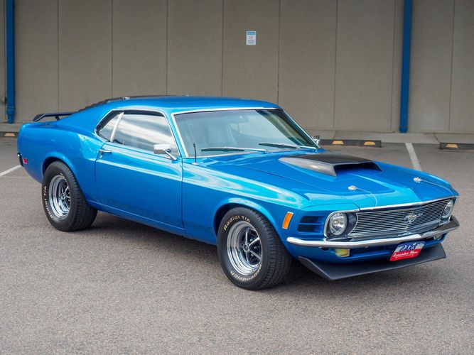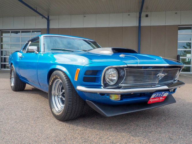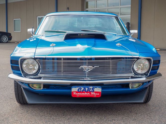 Offered for sale is this 1970 Ford Mustang Fastback turned Restomod! Equipped with a powerful 429 Cobra Jet V8 mated to a C6 automatic transmission will turn heads everywhere it's seen. Complete with a large long tube header dual exhaust system with electric cutouts that cannot be ignored. The paint and body are in excellent condition and finished in Acapulco Blue with a black bucket seat interior. The interior features custom Auto Meter Pro-Comp gauges with blue illumination and a floor shifter. It has a retro-look radio, Vintage AC controls, and a tilt steering column. You will find this Mustang is equipped with 4-wheel disc brakes for extra stopping power and an upgraded front suspension system. If you are looking for a fast, custom 1970 Mustang Call Today! 720-465-5104 $69,900 OBO