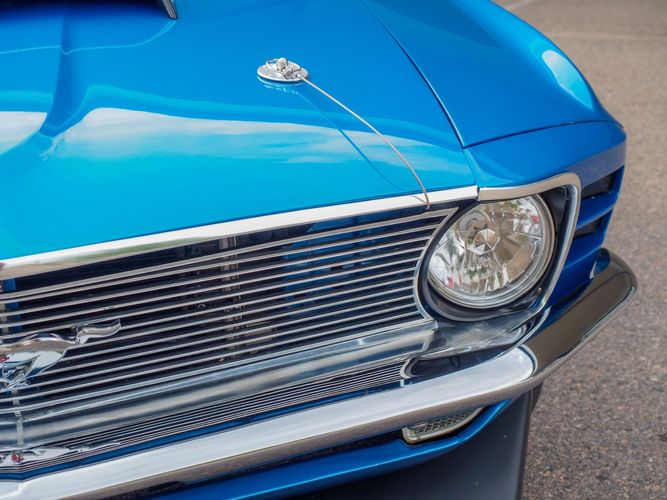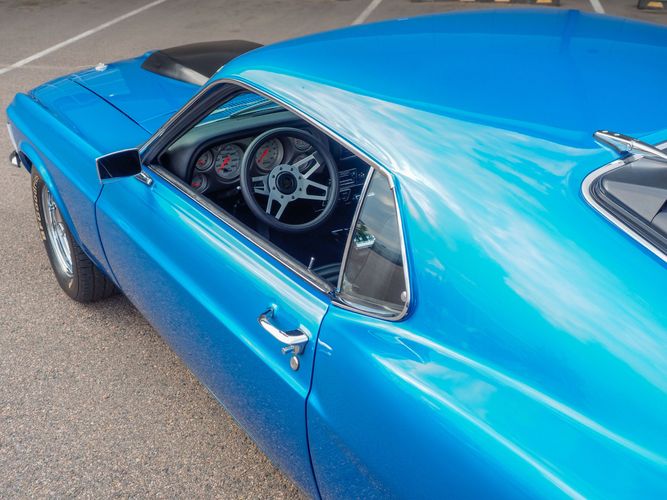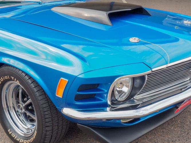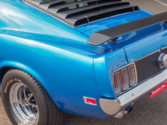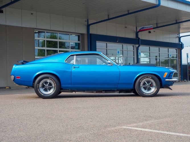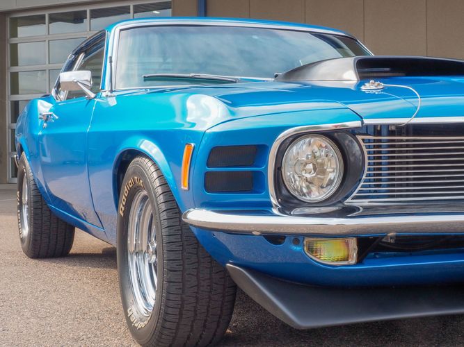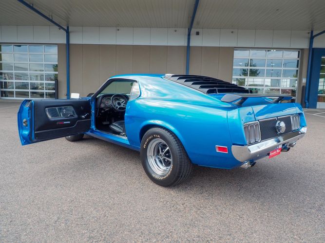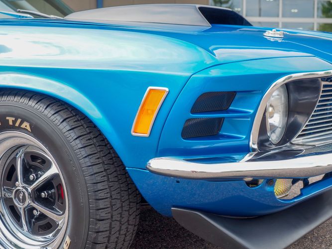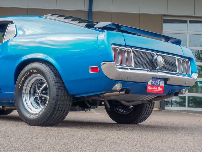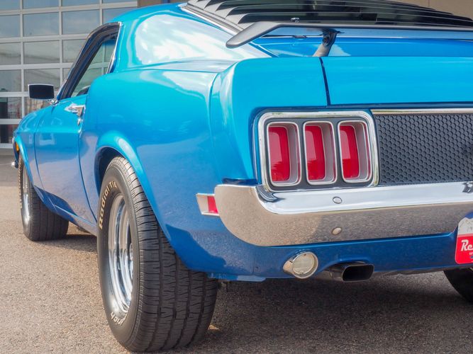Offered for sale is this 1970 Ford Mustang Fastback turned Restomod! Equipped with a powerful 429 Cobra Jet V8 mated to a C6 automatic transmission will turn heads everywhere it's seen. Complete with a large long tube header dual exhaust system with electric cutouts that cannot be ignored. The paint and body are in excellent condition and finished in Acapulco Blue with a black bucket seat interior. The interior features custom Auto Meter Pro-Comp gauges with blue illumination and a floor shifter. It has a retro-look radio, Vintage AC controls, and a tilt steering column. You will find this Mustang is equipped with 4-wheel disc brakes for extra stopping power and an upgraded front suspension system. If you are looking for a fast, custom 1970 Mustang Call Today! 720-465-5104 $69,900 OBO