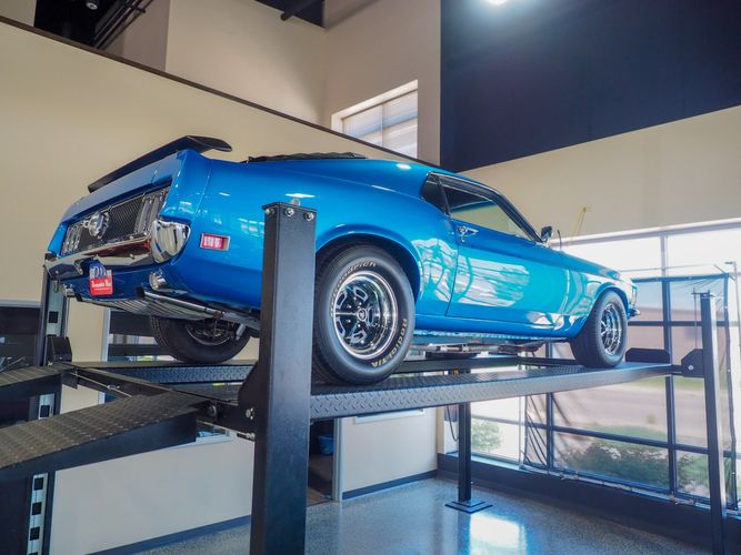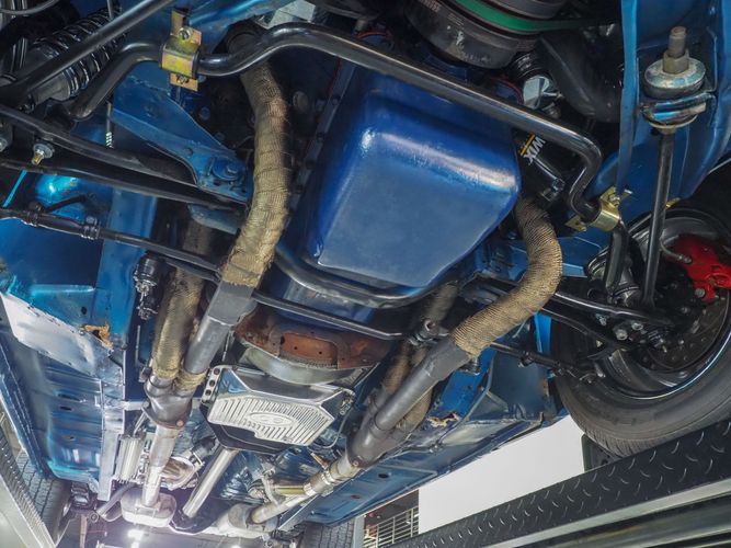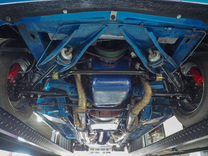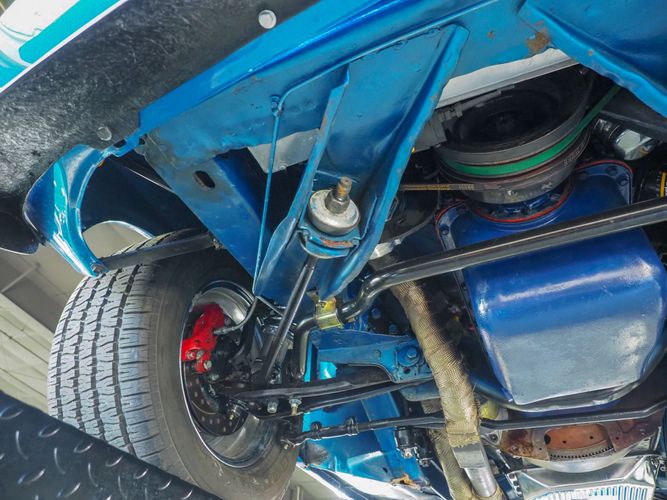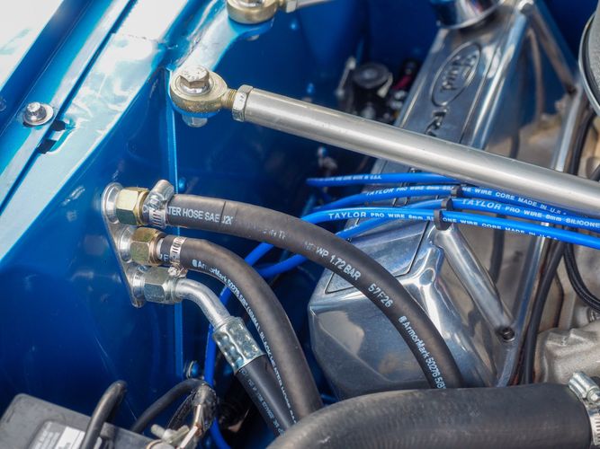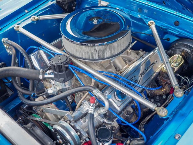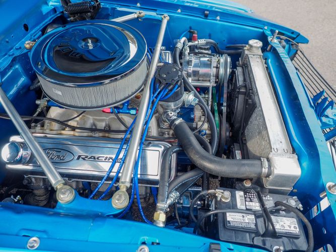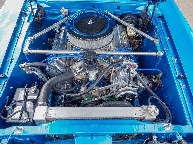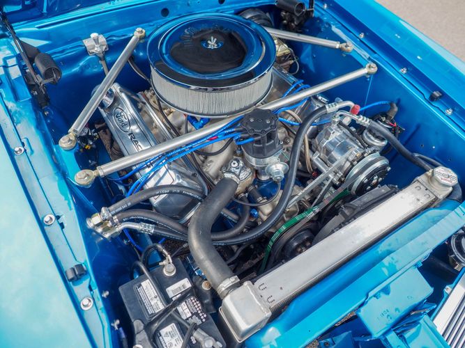 - 429 Cobra Jet V8 engine with aluminum heads and intake manifold