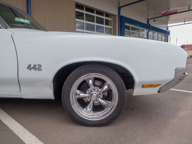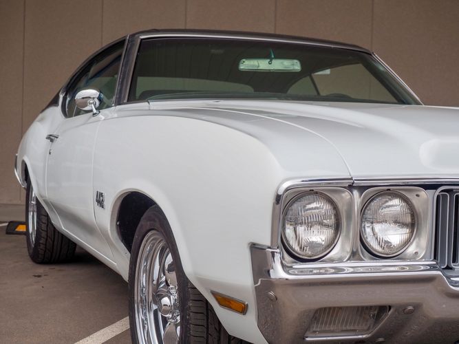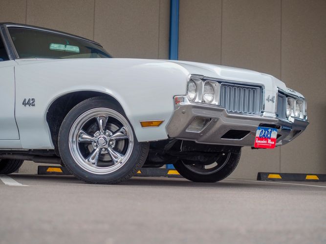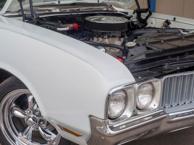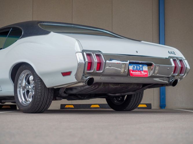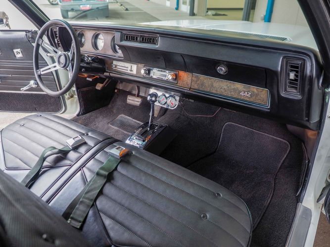 This is the ultimate driving Oldsmobile 442 powered by a stout 455 big block with aluminum heads, MSD ignition, headers and a 4-barrel carburetor. Paired with a 700-R4 overdrive transmission allows it to cruise on the highway with ease and keep the RPMs down. Equipped with a B&M Quicksilver shifter it allows you to slap through the gears making for an incredibly fun driving experience. The motor and transmission combination make for a great driver that can be driven anywhere reliably.