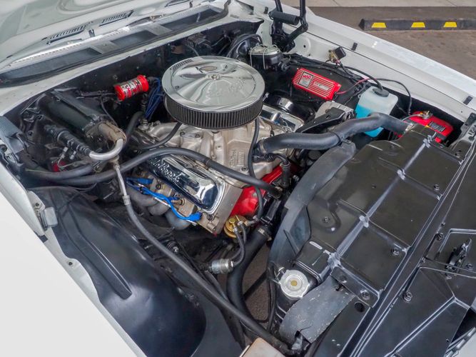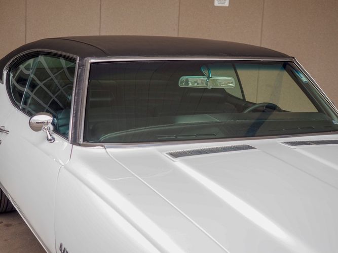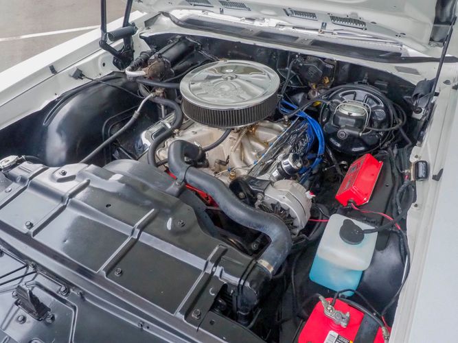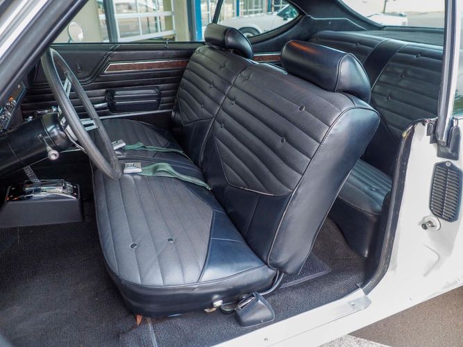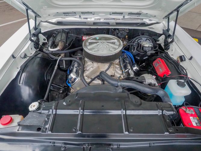 The body and floor pans are in excellent condition and well persevered. The body is razor straight and the white repaint quality is very high. The black vinyl top appears to be recently replaced and in great condition. Opening the door exposes the restored black vinyl bench interior with a wood grain dash board, factory gauges and the original style steering wheel to tie it all off. The undercarriage is lightly restored with mostly newer rubber, front steering components, upper control arm bushings and a fresh alignment. If you are looking for a stylish, unique, fun, muscle car with plenty of low-end torque look no further! CALL TODAY 720-465-5104