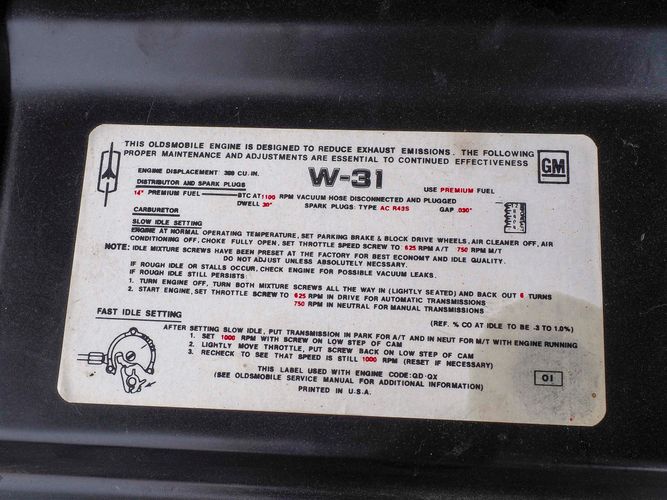 Offered by Cars Remember When is this restored, documented, original Cutlass W-31 car. The W-31 option is not well known and is truly an incredible car they offered in 1970. Complete with white stripes, rear spoiler, W-31 badging, and cold air induction hood. The W-31 got the Rocket 350 V8 rated at 325hp. From driving the car, it feels like much MORE horsepower than that, it is fast and comfortable! Lot's of torque and smooth Rocket V8 power. This appears to be a correct W-31 engine complete with its aluminum intake manifold. The body and interior are restored and in good shape. The undercarriage appears to be restored with lots of new rubber. This is a very fun car to drive and will get noticed anywhere you take it!