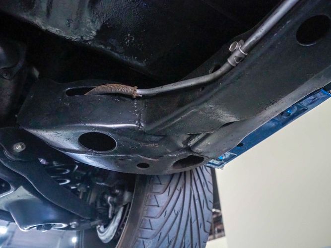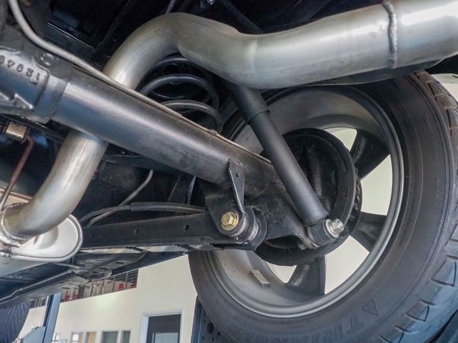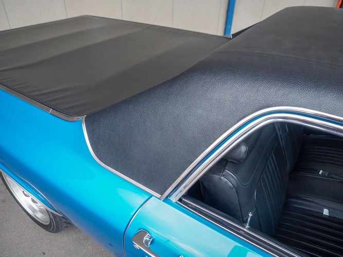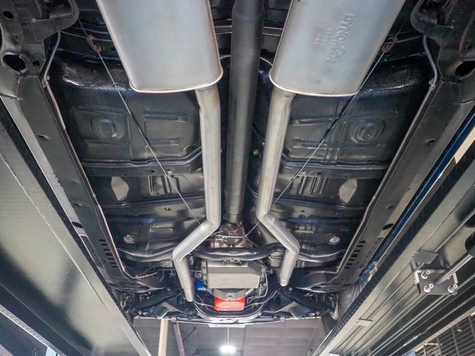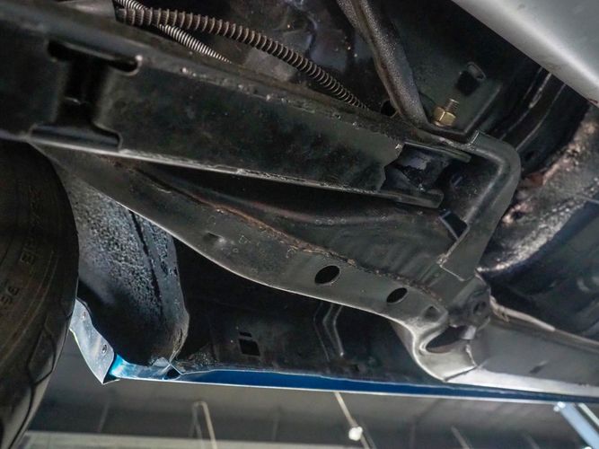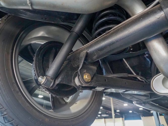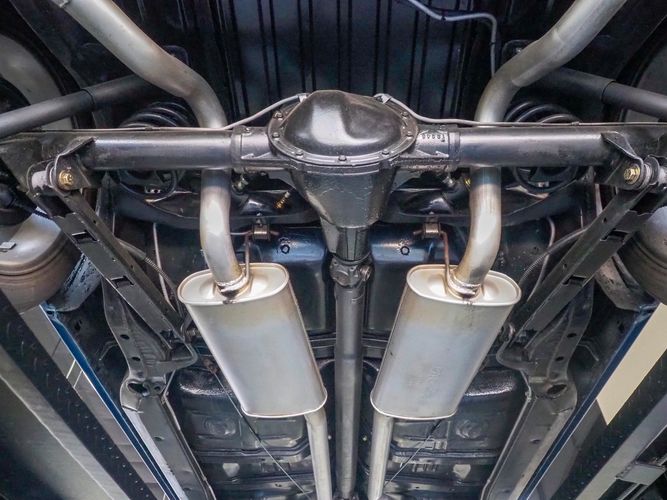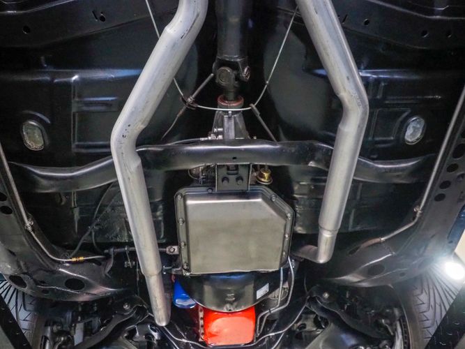 Under the hood is a low mile 350 V8 crate engine painted and dressed up as the original paired to a TH400 3 speed automatic transmission. The engine sounds great and runs smooth. Power steering and power brakes make this easy to drive. The undercarriage is fully restored and is extremely clean (see pictures at end of photo gallery).