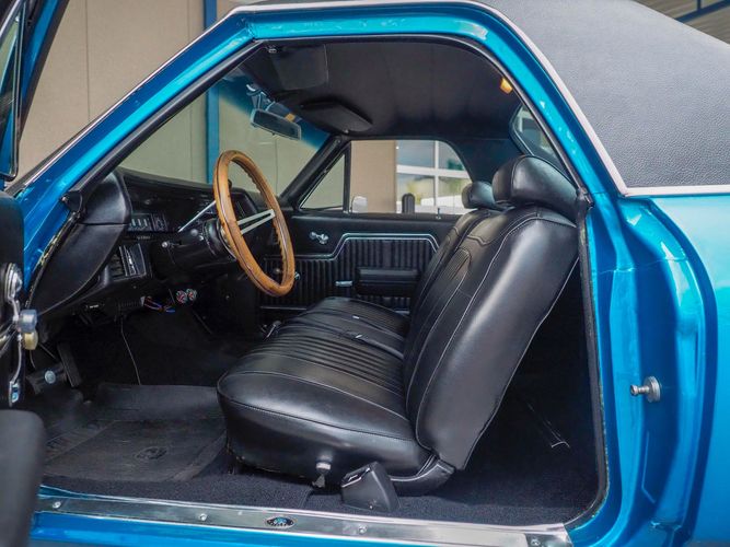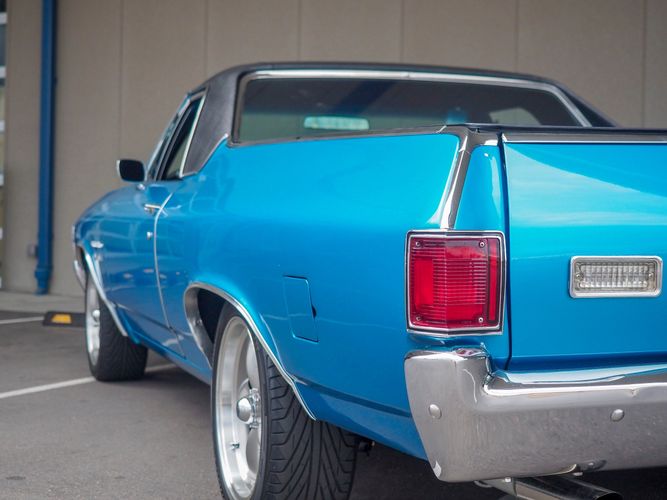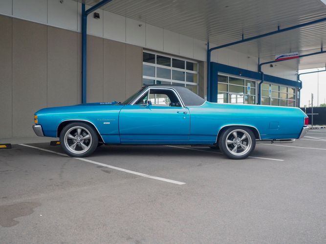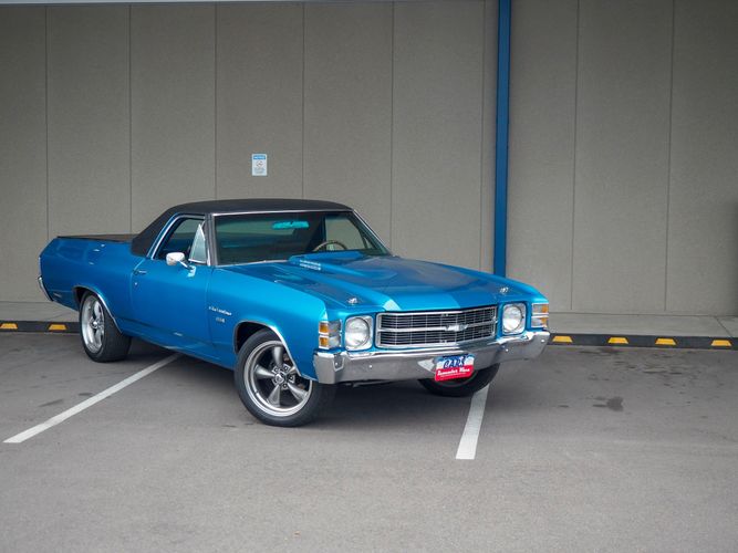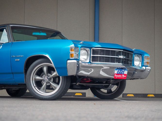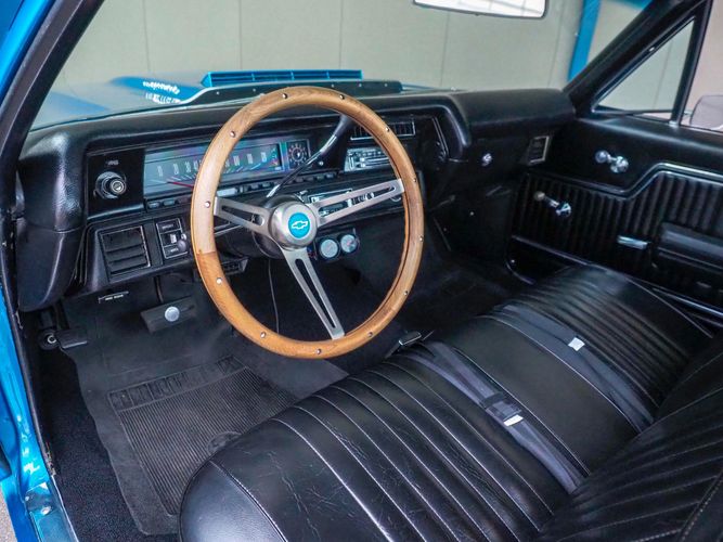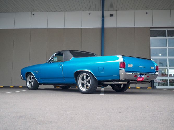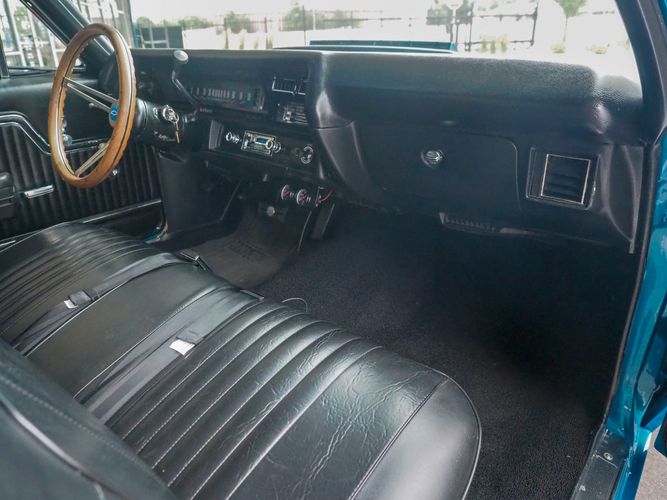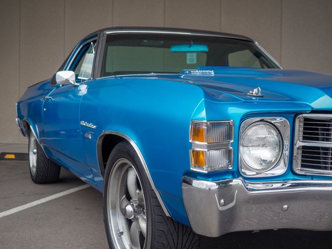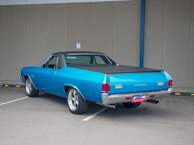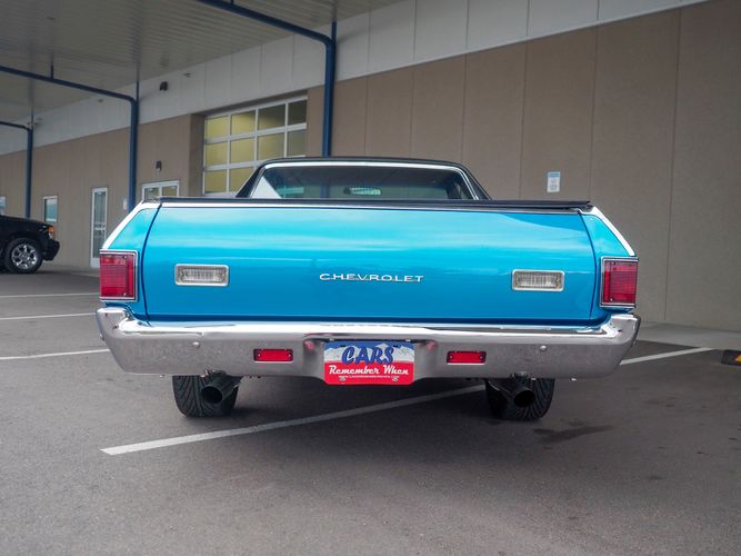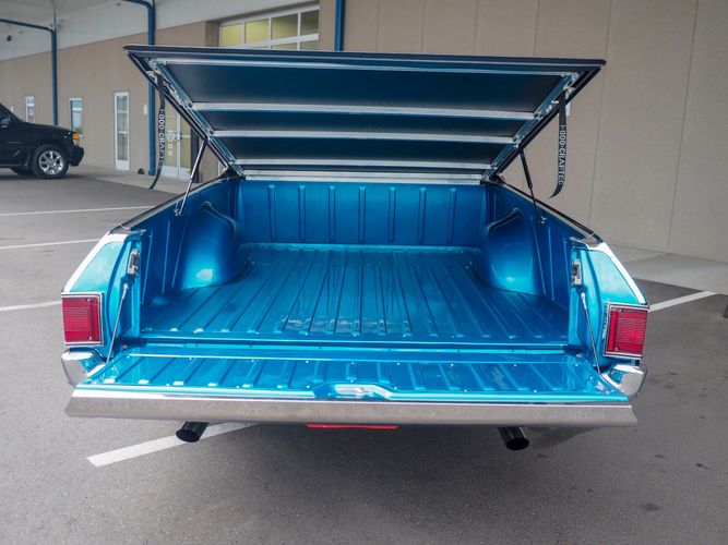 Beautifully restored and finished in the correct Mulsanne blue and equipped with it's original cowl induction hood. This body is razor straight and shows extremely well. Newer tires on 18'' wheels give this El Camino an excellent muscle car stance. A nicely restored factory bench interior is in excellent condition with factory gauges that look brand new. Fitted with a retro-style radio, updated speakers and factory A/C make this a comfortable, fun car.