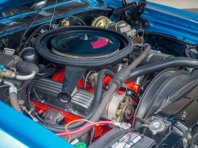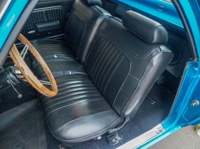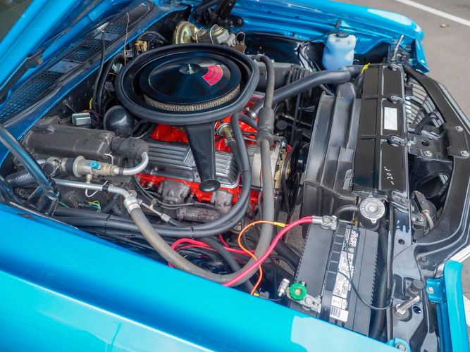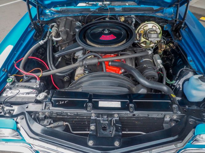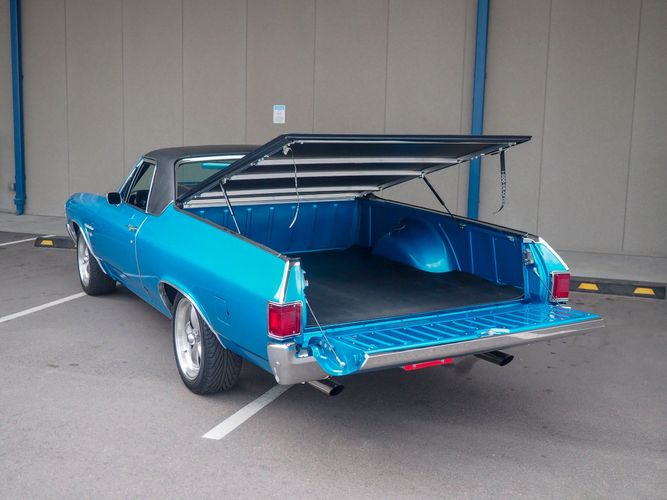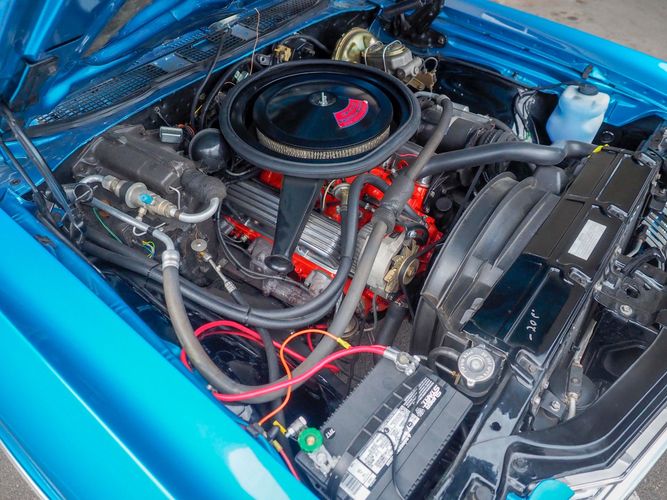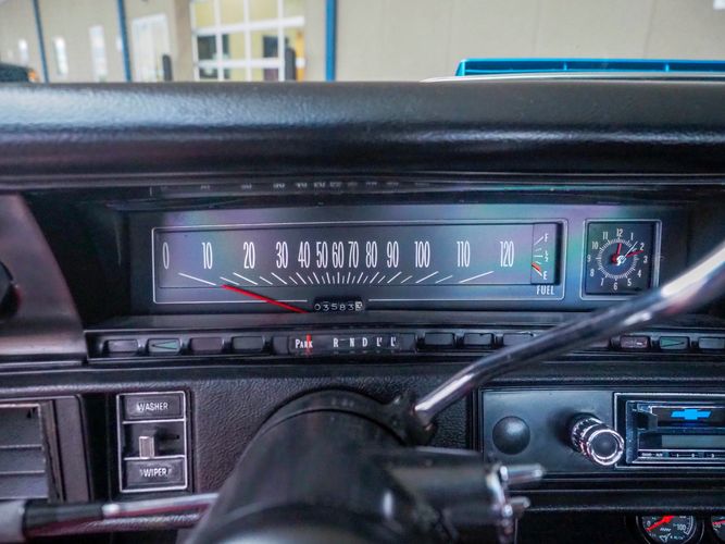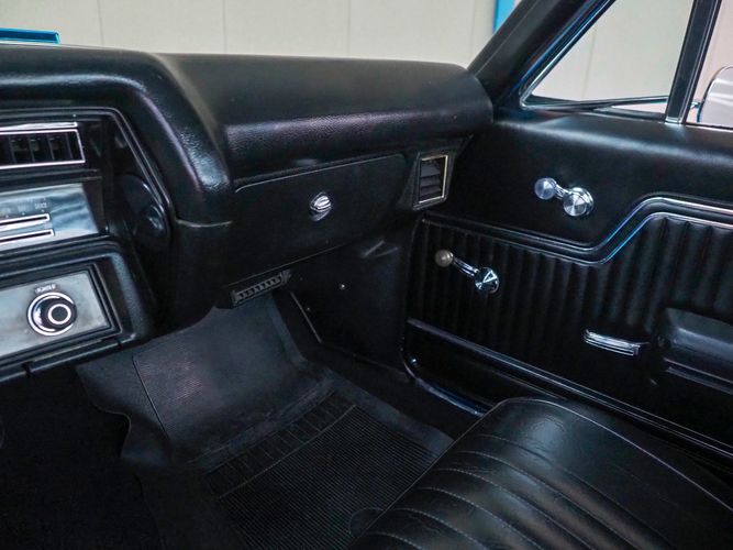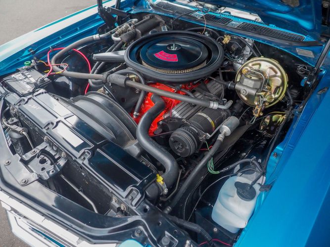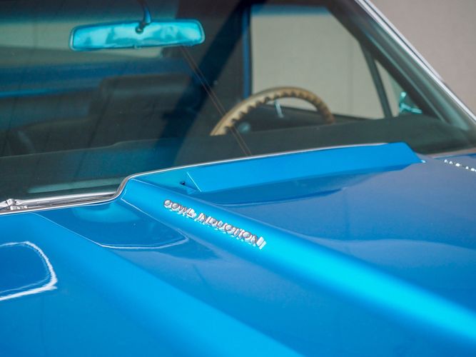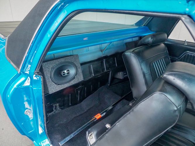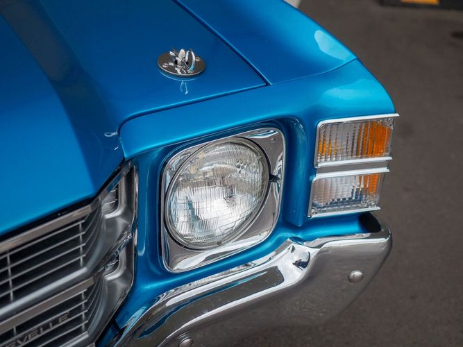 Beautifully restored and finished in the correct Mulsanne blue and equipped with it's original cowl induction hood. This body is razor straight and shows extremely well. Newer tires on 18'' wheels give this El Camino an excellent muscle car stance. A nicely restored factory bench interior is in excellent condition with factory gauges that look brand new. Fitted with a retro-style radio, updated speakers and factory A/C make this a comfortable, fun car.