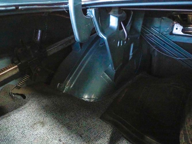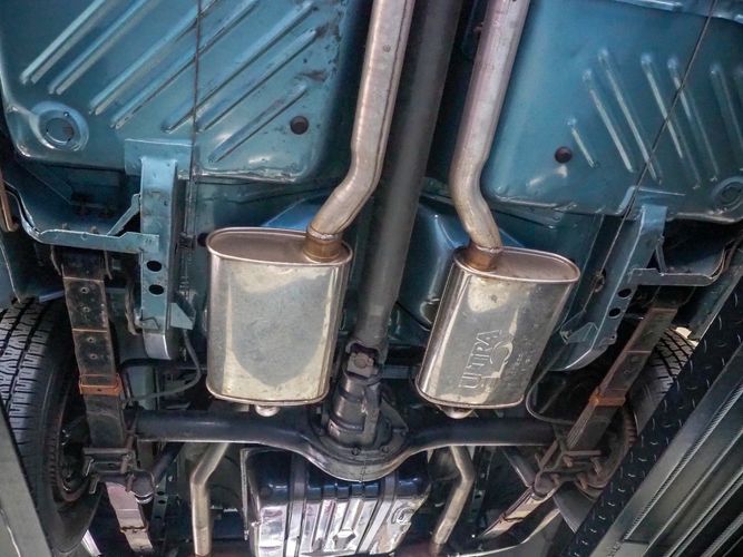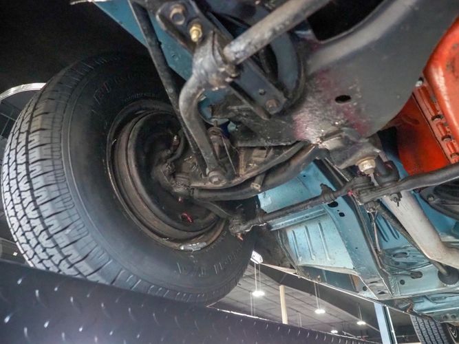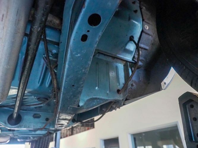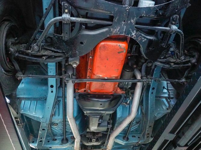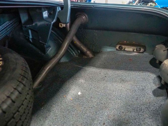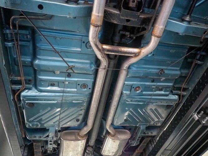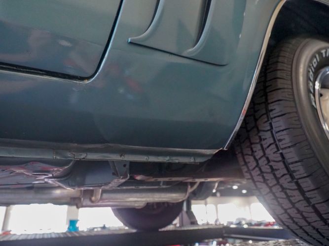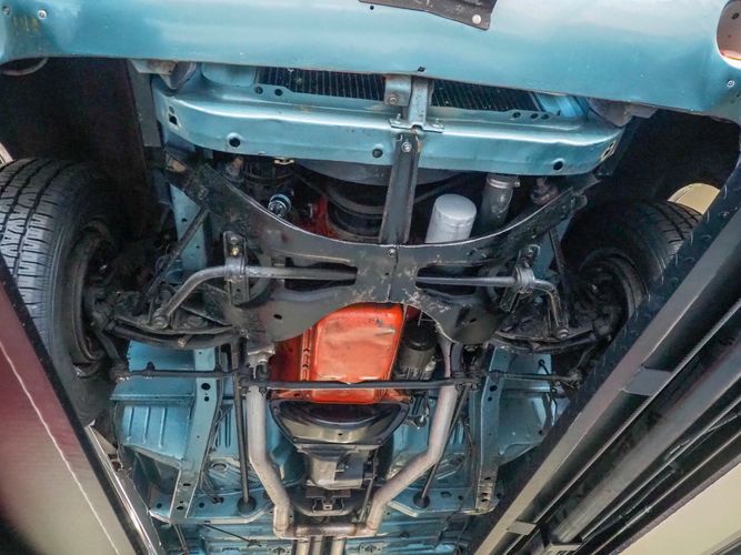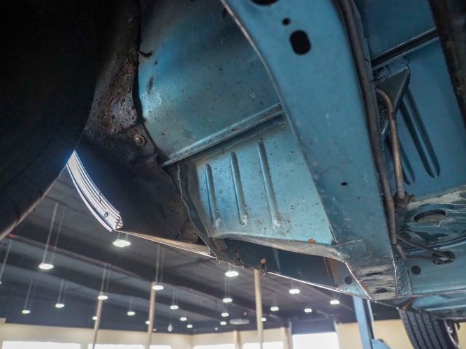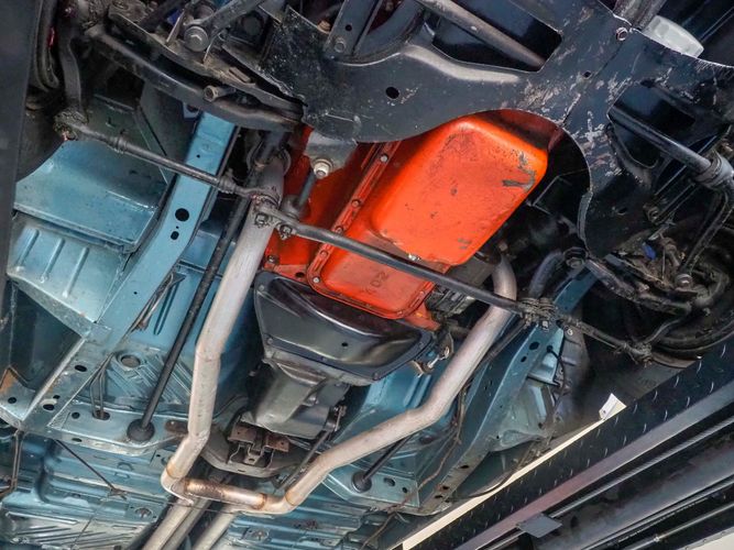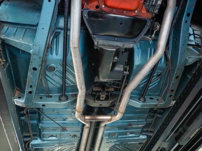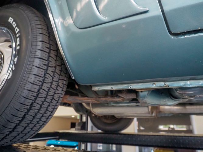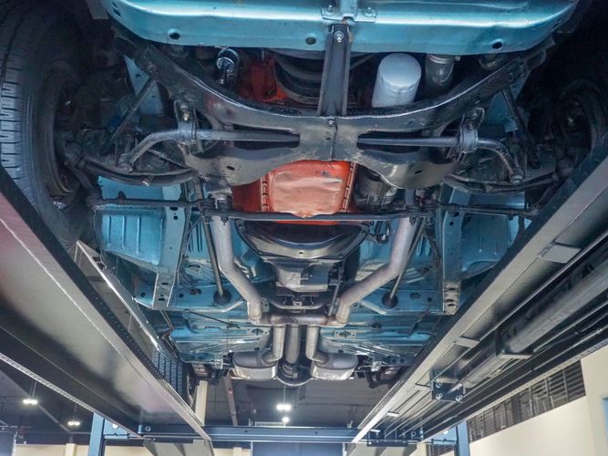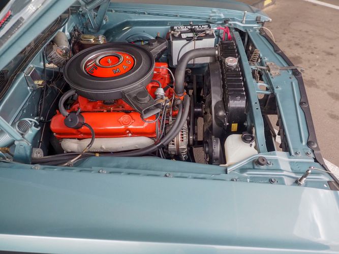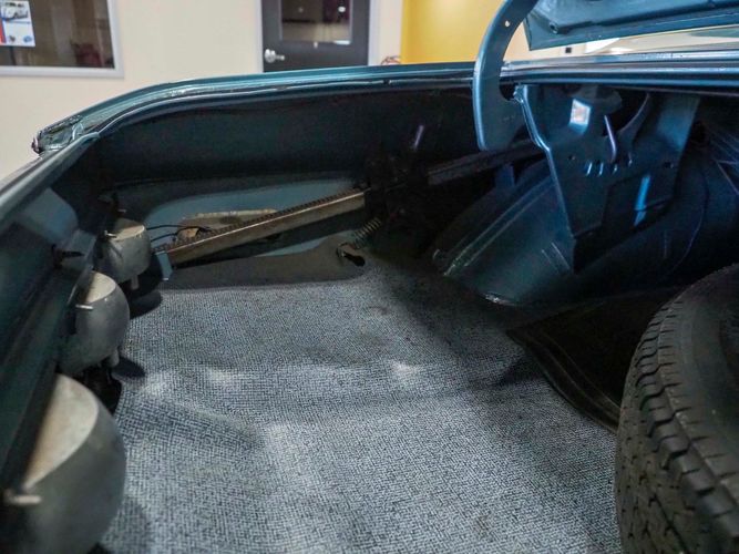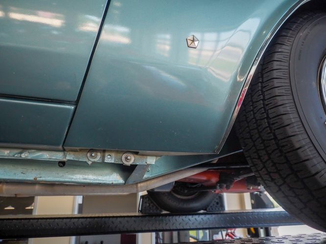 This car was given a complete rotisserie restoration, and the proof is in the details. The panels expertly fit together, and the factory-correct Light Gunmetal paint shines nicely. Even more shine comes from the bumpers, hood pins, and the 15-inch Rallye wheel trim. Complete with sharp-looking black R/T longitudinal stripes that accent the body lines. The interior is nicely restored with black vinyl bucket seats, center console, and heat & defrost.