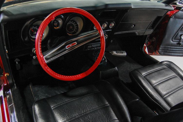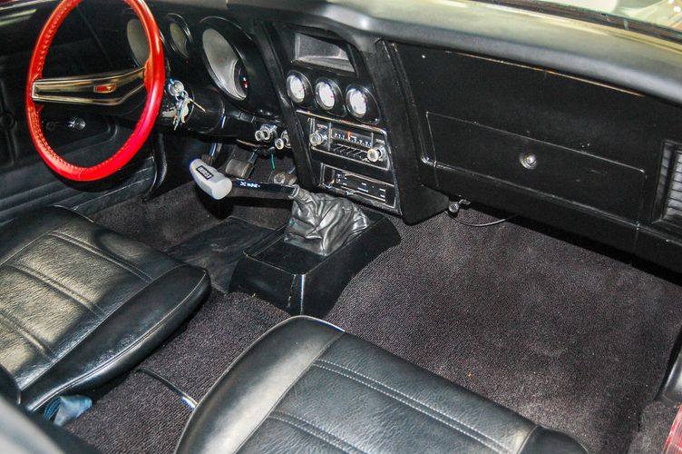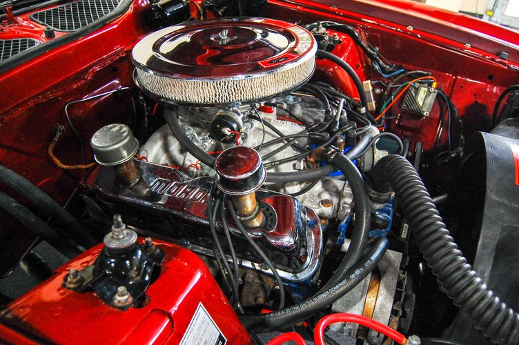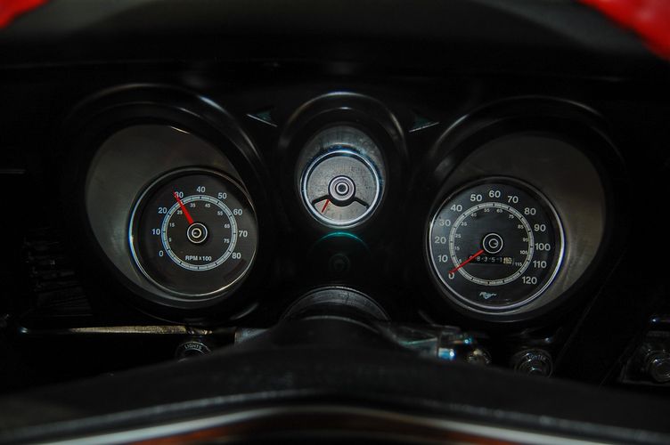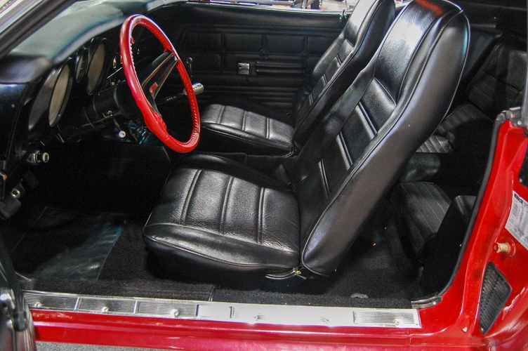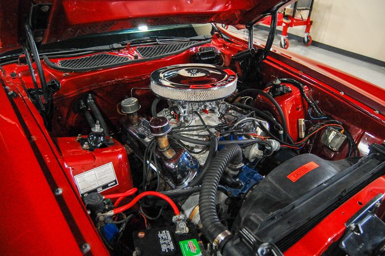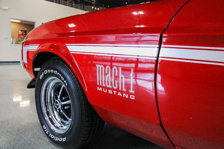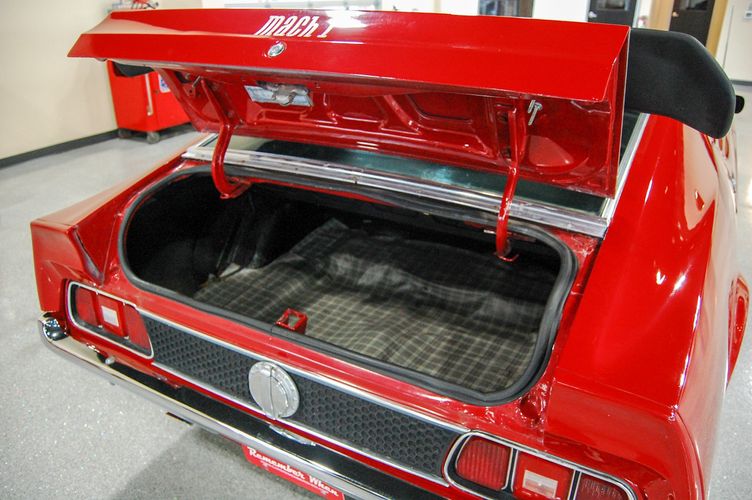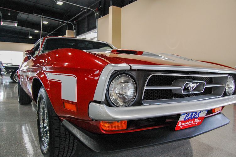 With Mustang production numbers dwindling each year after the 1965 model year due to competition, they made a total of 151,484 cars in 1971 with only 36,499 being fastback Mach 1s. This Mach 1 was originally a blue car and is now a candy apple red with white racing stripes. This car is the perfect driver to take out and have fun but not worry about every little pot hole or paint chip. The built 351 Cleveland small block sounds mean, has plenty of low end torque, and is an absolute blast to drive with the 4 speed. The Mustang suspension rides smooth, handles well and has been rebuilt to OE specs. The interior package is very luxurious with the black leather bucket seats, center mount gauges, and topped off with the Hurst Shifter. Overall this Mustang shows very well, drives great and is a head turner anywhere you take it!