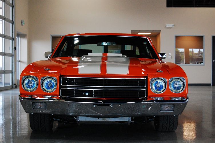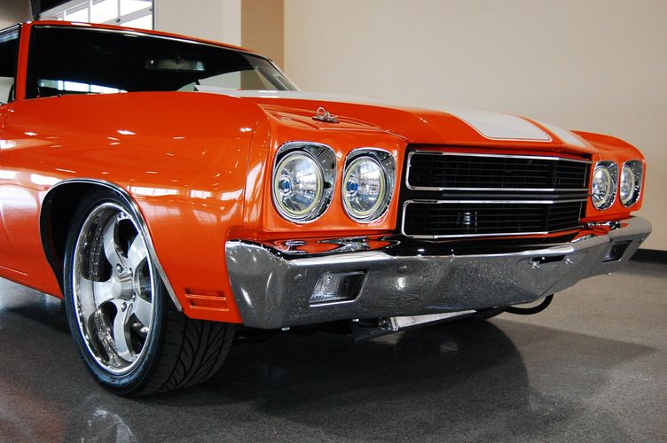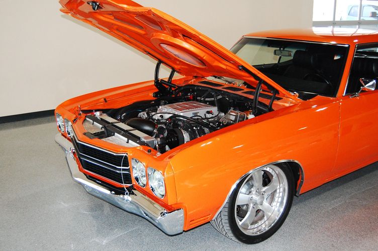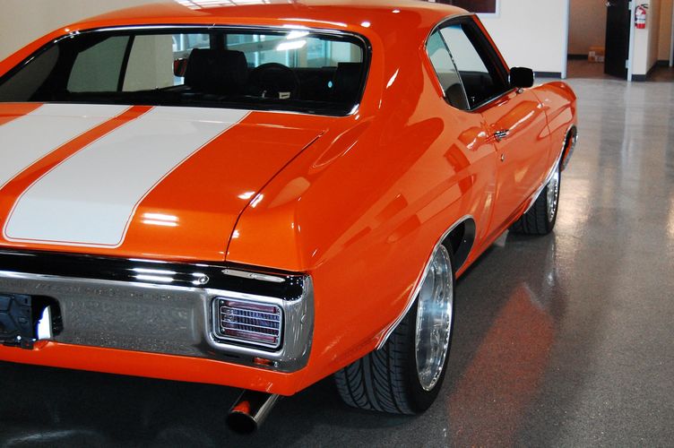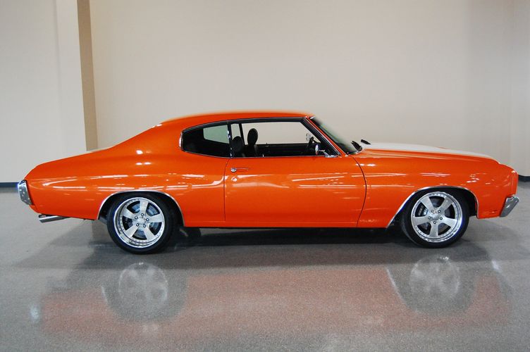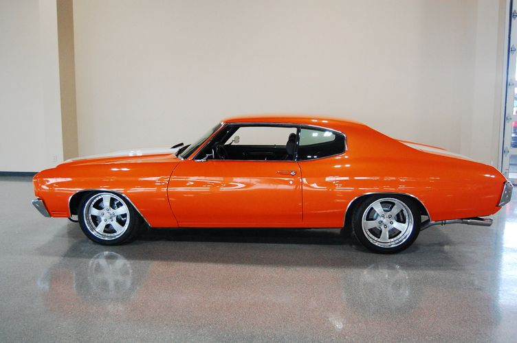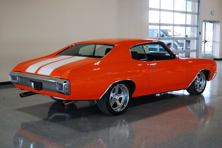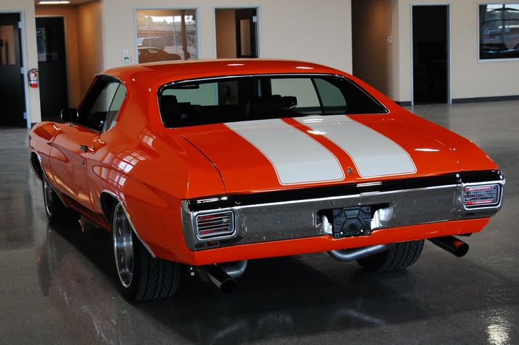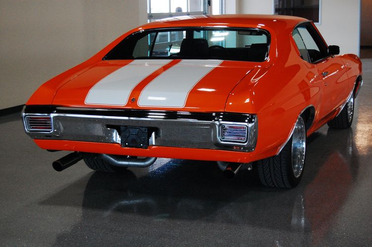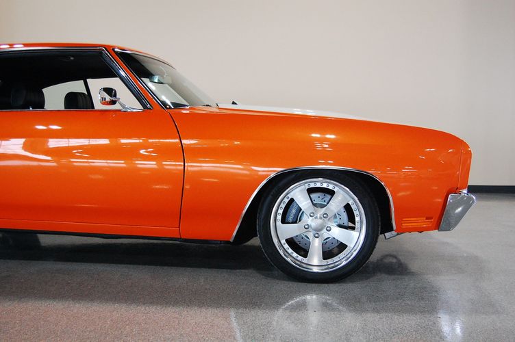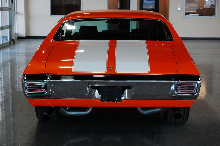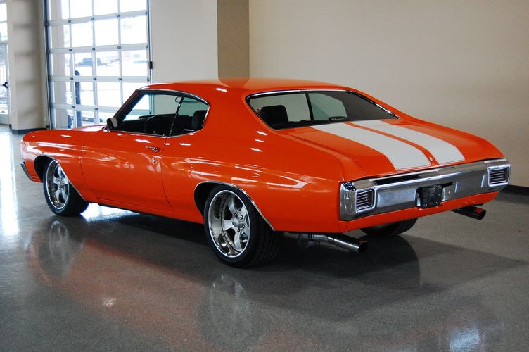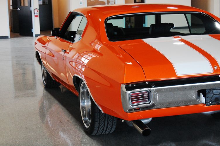This 1972 Chevelle is a one-off, custom pro touring build that is an outstanding fit and finish. The orange pearl paint job with white rally stripes is showroom quality. The interior includes custom black leather bucket seats that are extremely comfortable. Black leather dashboard with custom digital gauges give the interior a great look. Under the hood, is a fresh fuel injected LSX with a LS9 supercharger cranking out 600hp. With the 6 speed transmission, this car is geared well to compliment the stout power plant. The suspension has been redone with a 4 link in the rear and a front tubular control set-up with coilovers providing a stable ride quality at any speed. This Chevelle is an extremely streetable and reliable setup that can be driven anywhere or in any situation. Vintage air, fuel injection, supercharged, alpine stereo, custom digital gauges is just the tip of the iceberg of quality parts equipped on this ride. The car was built for and owned by former four time UFC champion welterweight fighter Nate Marquardt.