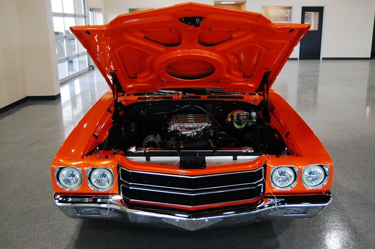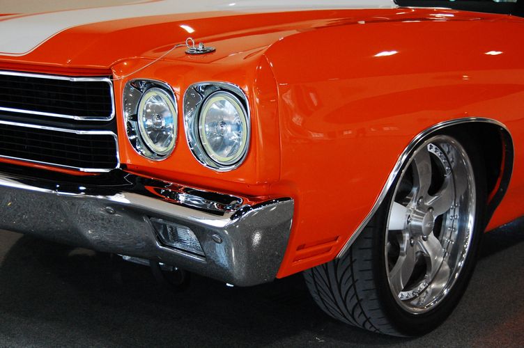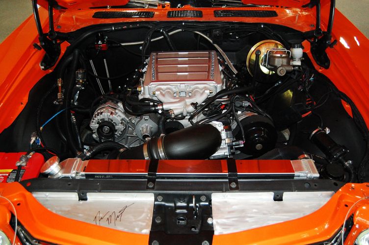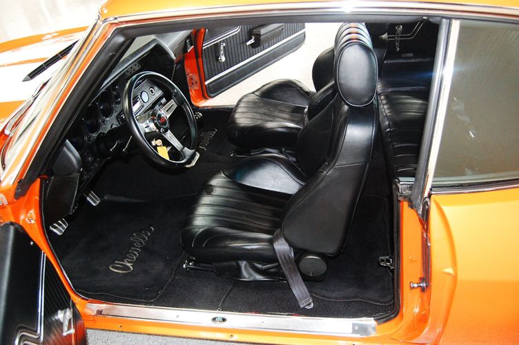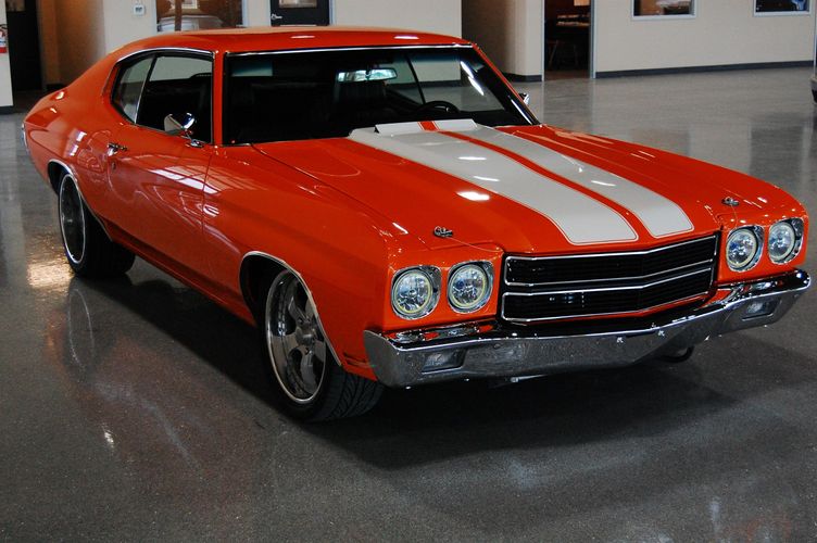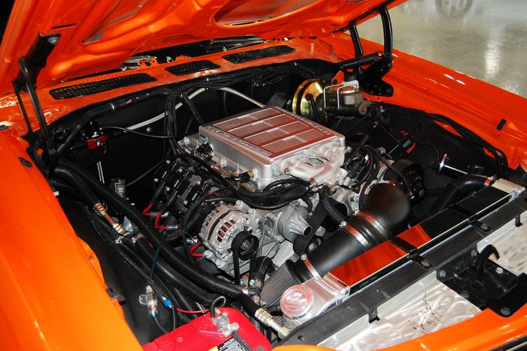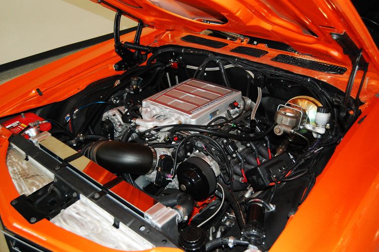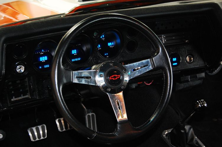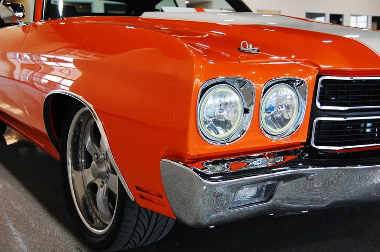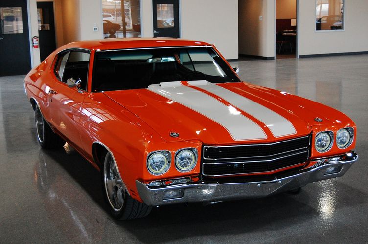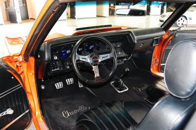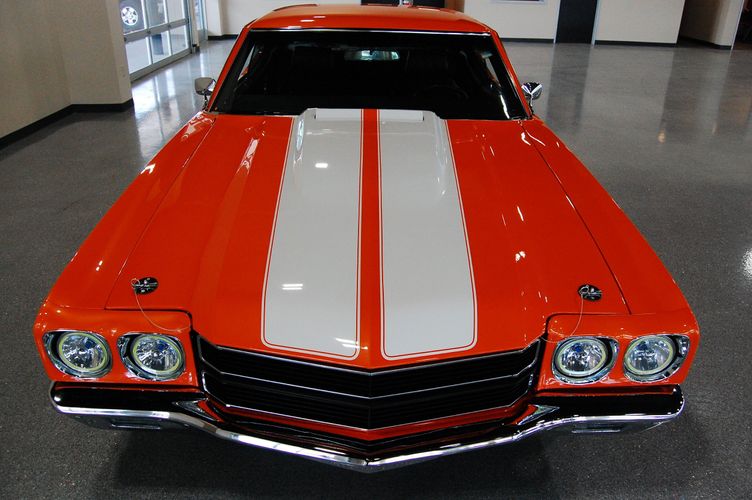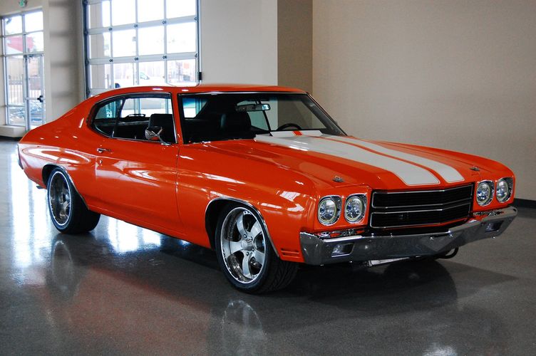 This 1972 Chevelle is a one-off, custom pro touring build that is an outstanding fit and finish. The orange pearl paint job with white rally stripes is showroom quality. The interior includes custom black leather bucket seats that are extremely comfortable. Black leather dashboard with custom digital gauges give the interior a great look. Under the hood, is a fresh fuel injected LSX with a LS9 supercharger cranking out 600hp. With the 6 speed transmission, this car is geared well to compliment the stout power plant. The suspension has been redone with a 4 link in the rear and a front tubular control set-up with coilovers providing a stable ride quality at any speed. This Chevelle is an extremely streetable and reliable setup that can be driven anywhere or in any situation. Vintage air, fuel injection, supercharged, alpine stereo, custom digital gauges is just the tip of the iceberg of quality parts equipped on this ride. The car was built for and owned by former four time UFC champion welterweight fighter Nate Marquardt.