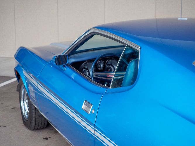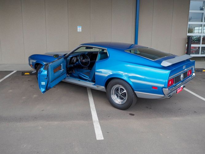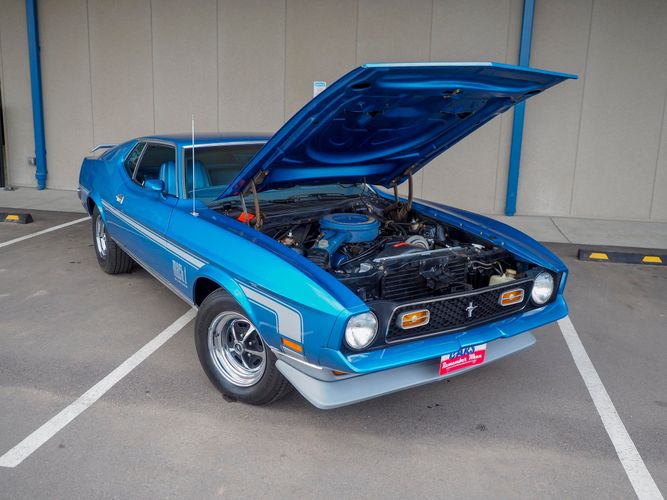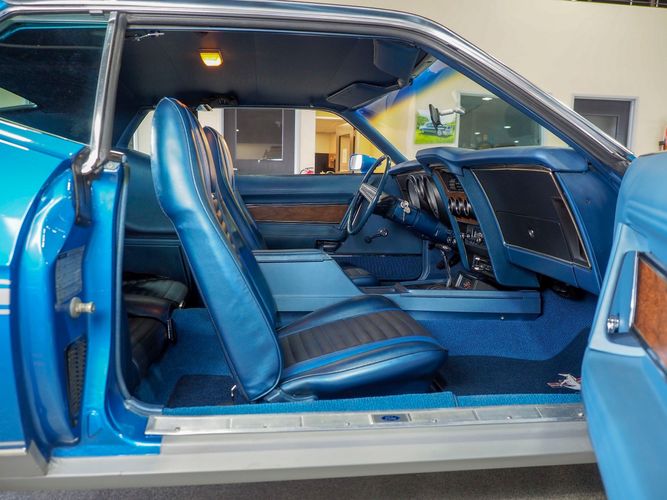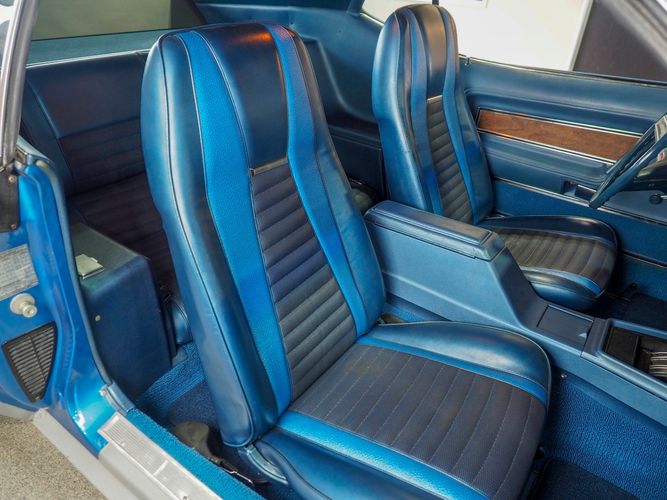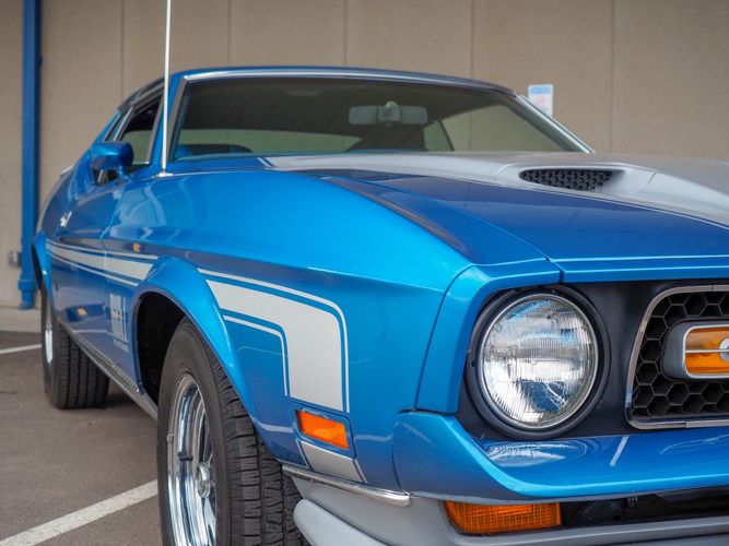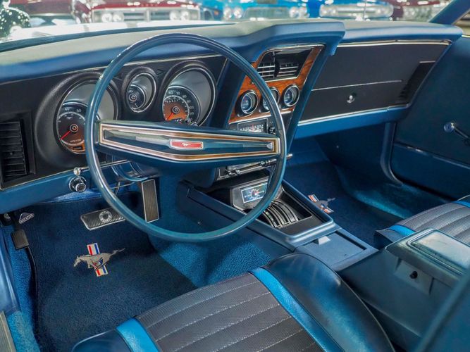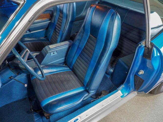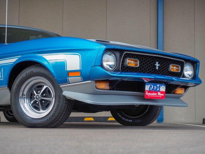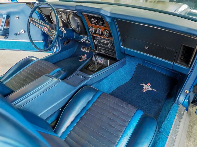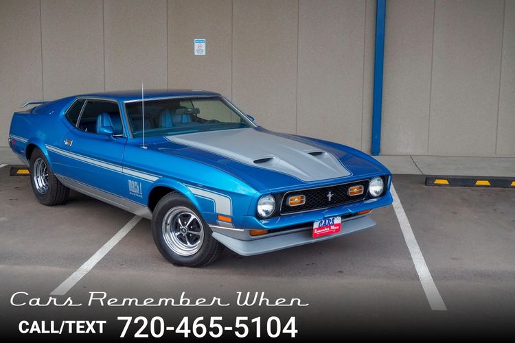 Offered by Cars Remember When is this gorgeous, very original 1972 Mustang Mach 1 sporting it's original, unrestored Blue Comfortweave interior. This car is believed to have 40,622 miles and the overall condition of the car certainly backs that up. The interior is in excellent condition and everything appears to work from gauges to lights. The original seat covers look brand new! The exterior was repainted the original Bright Blue and is simply stunning. The body is razor straight and the gray stripping paired with the Bright Blue is a very desirable color combo. Riding on original style Magnum 500 wheels this Mach 1 will get attention everywhere you take it.