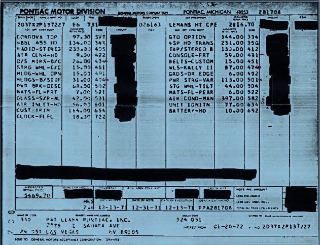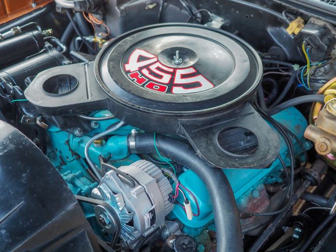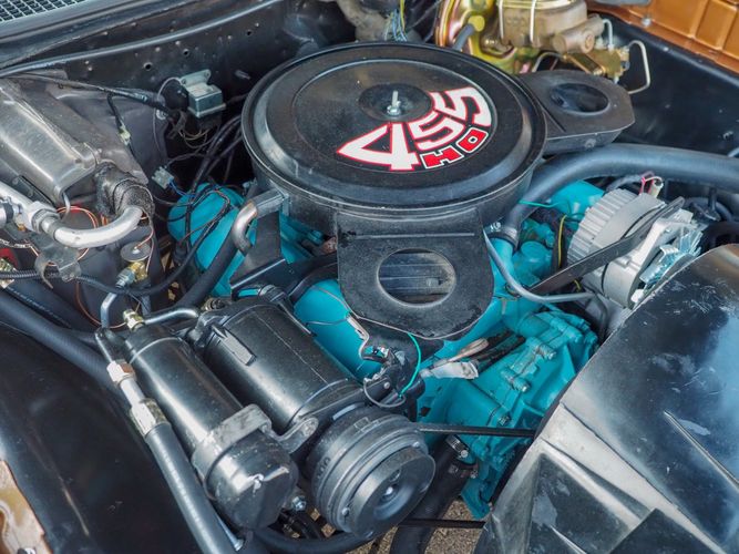 This is one of 310 455 HO 4 speed GTO’s produced for the 1972 model year. The PHS document at the end of the photo gallery verifies this car was born as a 455 HO 4-speed from the factory. The engine is a service replacement block and is not numbers matching. The title supports the mileage of 97,022 miles.