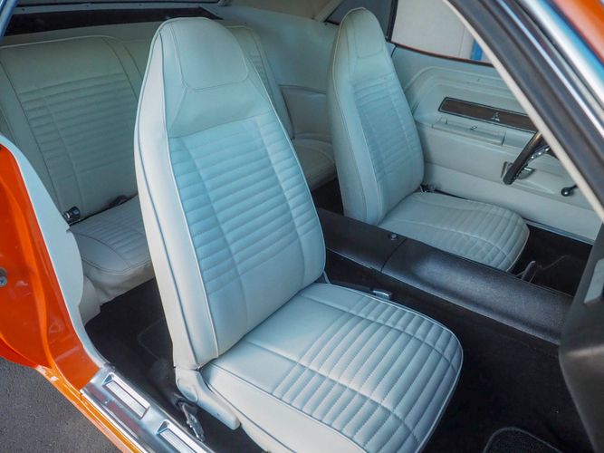 Under the hood is a fresh 360 V8 engine that has the perfect 'muscle car' sound and plenty of power to back it up. For full engine specs, please see the PDF link on our website. This car is easy and fun to drive with the 727 automatic transmission, power front disc brakes and power steering. The undercarriage is clean and neatly restored providing a smooth ride free of clunks. Overall this Challenger has a great fit and finish and great color combo with the Omaha Orange over the white vinyl interior. This car sounds and drives excellent. CALL TODAY 720-465-5104