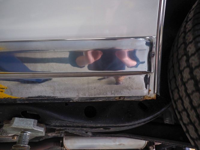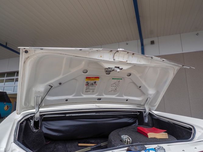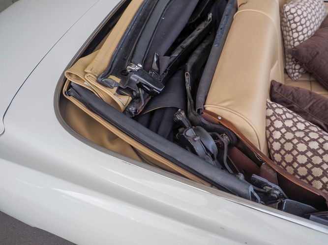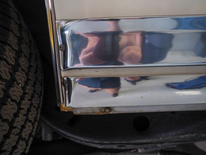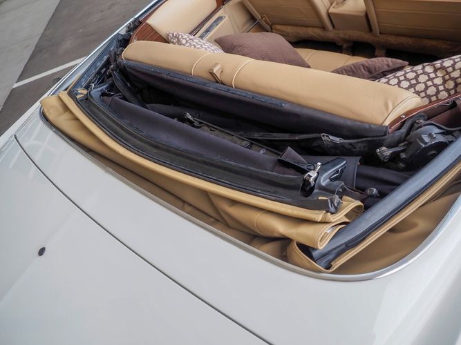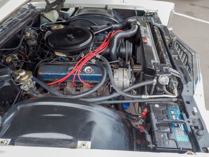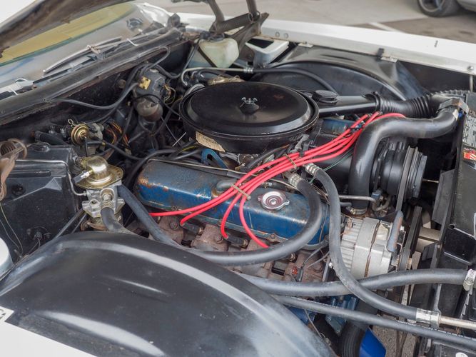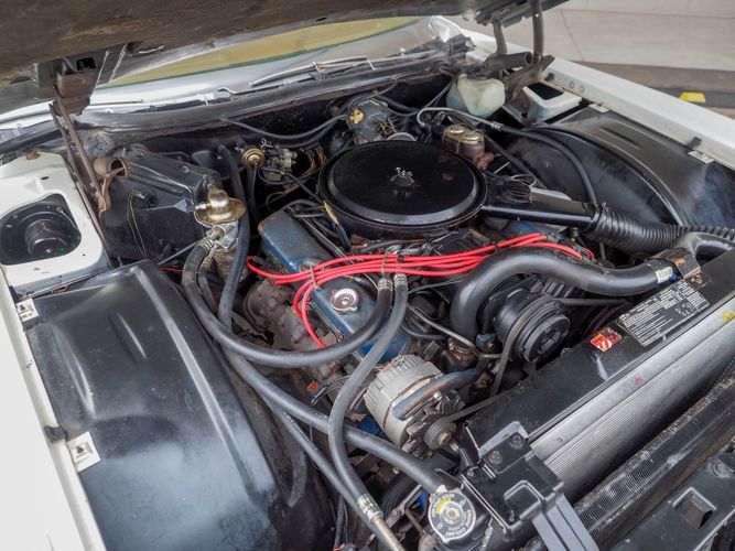 The body is very straight and the white paint has a nice shine to it. This car has one respray of the original factory white color. All of the chrome and trim is in great shape and the original hub caps look great. It has new tires with lots tread.