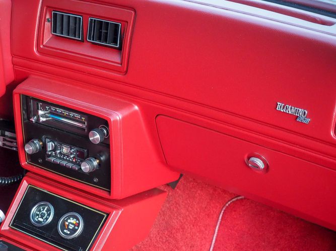 Offered by Cars Remember When is this beautifully restored show quality 1978 El Camino. Rare and seldom seen in this condition, it is unique and turns heads almost everywhere it goes. The body is very straight with an excellent black paint finish over a nicely restored red vinyl interior complete with bucket seats, console, CB radio, and sunroof. The body has nicely done painted pin stripping on it to match the interior and add style. It has added tinted windows, custom front bra, carpeted bed, and custom bed cover. This car was restored back in the 1990s and was babied and maintained perfectly since then. You can tell the previous owner of this car put a lot of time, money and thought into the build. The underside is just as nice as the top. All of the rubber bushings and suspension components are in great shape with lots of chrome throughout. This car is a SMOOTH driver that is comfortable and fun to drive. Clean title and colorado emissions sticker. READY FOR ITS NEXT OWNER. CALL TODAY 720-465-5104