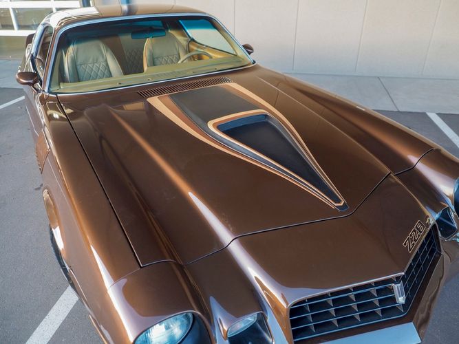 A freshly restored very original survivor Z28 Camaro freshly painted in a gorgeous brown metallic. Featuring; Cold A/C, comfy original restored tan interior, 4 speed manual paired to a 350V8 with a fresh set of tires mounted on Z28 turbine wheels. This coupe drives very nice and smooth and is free of rattles and vibrations. All electronic accessories work well and the updated look-alike radio sounds great. The steering feels nice and tight, the brakes stop straight and the car drives down the road straight. Overall, if your looking to buy an iconic Z28 the drives as good as it looks, look no further!