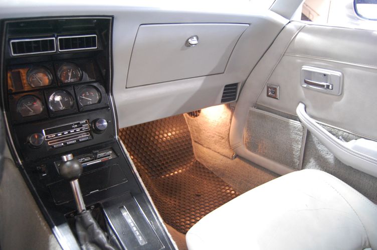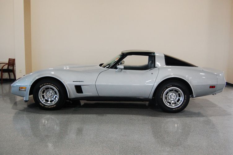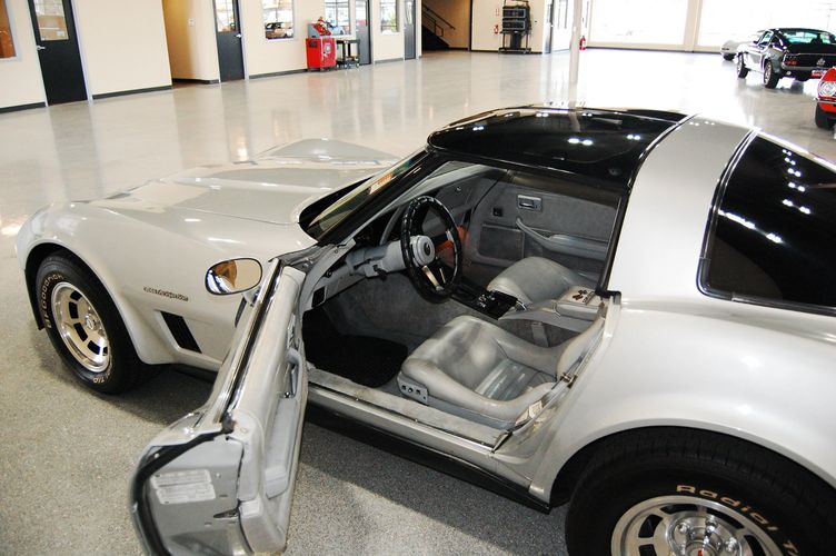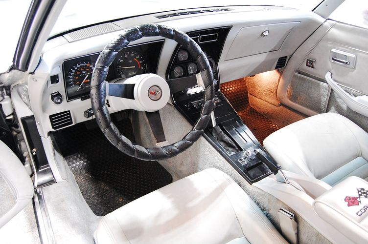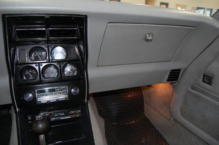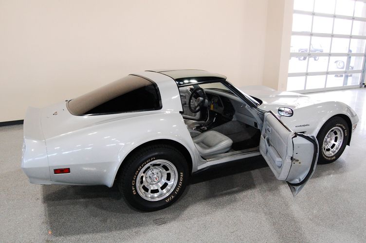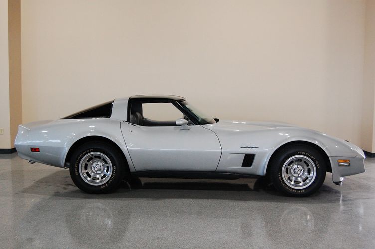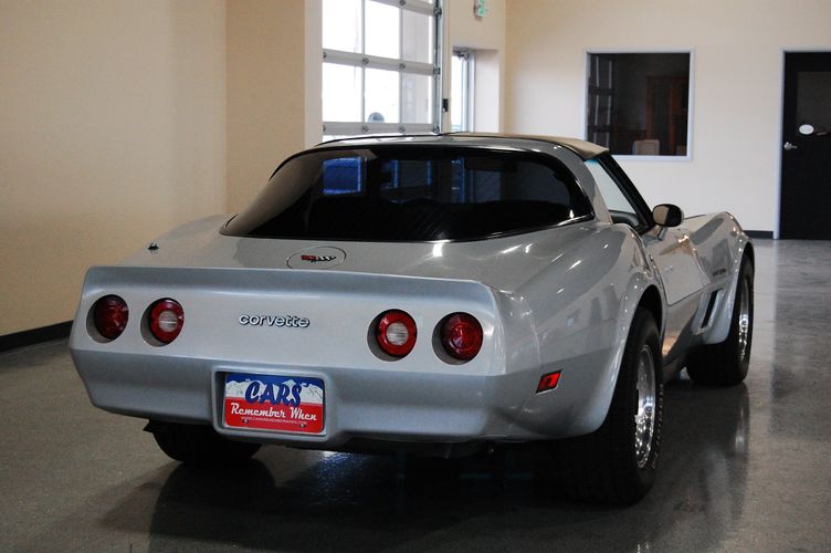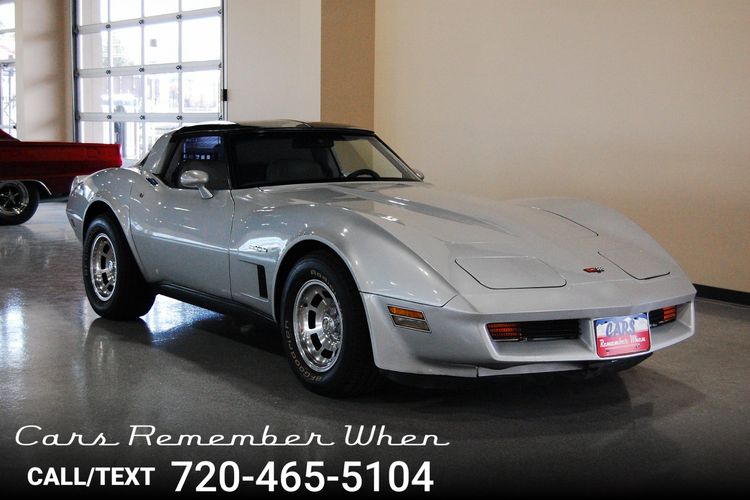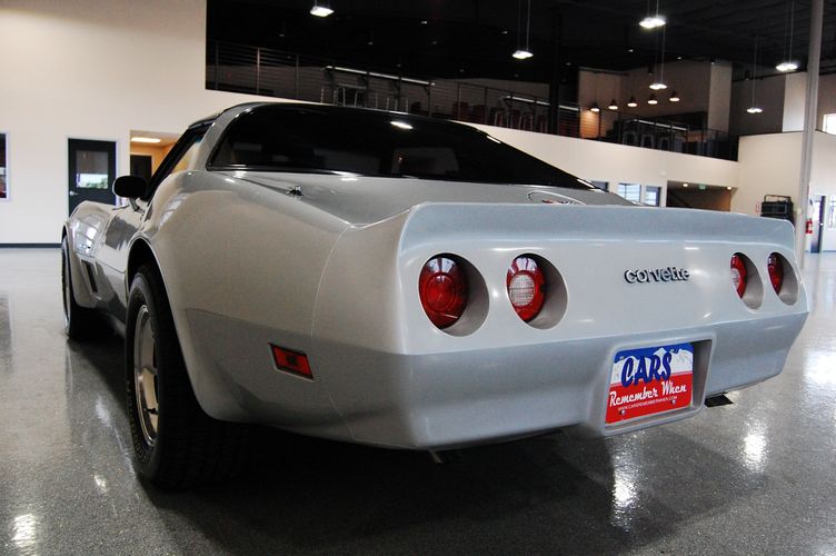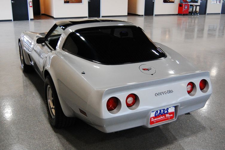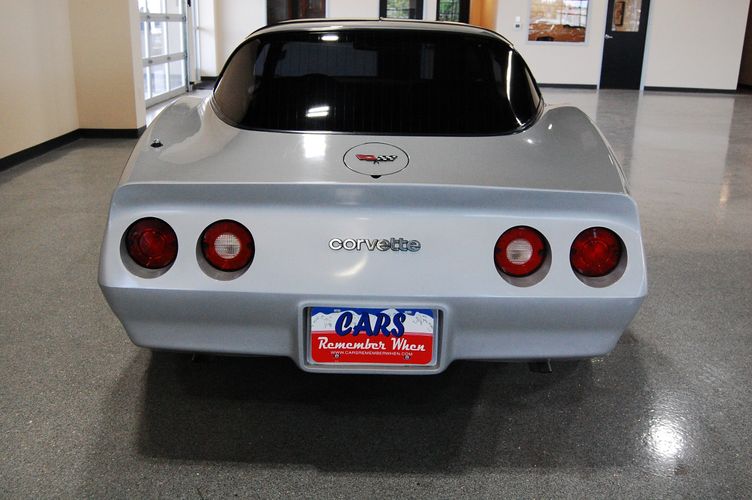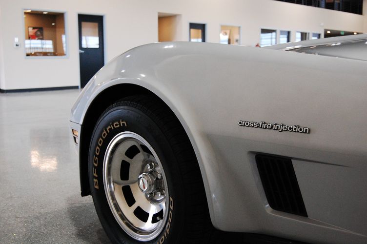 1982 saw the debut of the “Cross-Fire Injection†fuel delivery system. This TBI (Throttle Body Fuel Injection) was not the type of fuel injection installed previously in some C1 and C2 Corvettes. It utilized two throttle bodies combined with Chevrolet’s computer control system. The engine produced 200 hp and was mated to a new four-speed automatic transmission with torque converters bypass in the top three gears. Compared to the previous Turbo-Hydramatic 3-speed, the new 700-R4 transmission had a lower first and second gear for improved low-end acceleration, and a fourth gear overdrive that would reduce engine RPM by 30 percent at highway cruising speeds, resulting in better fuel economy. The final model C3 Corvette's published performance numbers were 0-60 in 7.9 seconds-the quarter-mile in 16.1 @ 85 mph. This was the last year for 8-track tape availability and new “cross-fire injection†emblems appeared on front fenders. Nose and fuel door crossed-flags emblems changed to a more squared design. In 1982 Chevrolet knew this would be the last year of an entire generation of Corvettes and so commemorated the occasion by offering a Collector Edition with separate serial number sequencing, silver-beige paint, unique wheels patterned after the 1967 model's bolt-on alloys, and an operable rear hatch window.