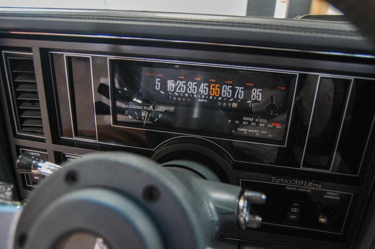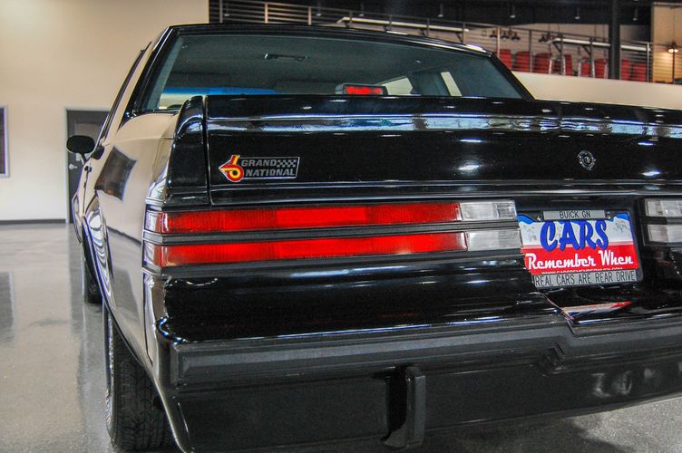 All good things come to an end, and Buick decided to go out with a bang for its final Grand National. In 1987, a lightweight WE4 (turbo T) option was offered. Only 1,547 of this variant were produced. The differences between a WE4 and the Grand National were the interior trim package, wheels, exterior badging, aluminum bumper supports, and aluminum rear brake drums as opposed to the Grand National's cast iron, making the WE4 a lighter and faster car. The rear spoiler was only available as a dealer installed option. 1987 was the only year that the LC2 turbo option was available on any Regal, making it possible to even see a Limited with a vinyl landau roof and a power bulge turbo hood. Turbo Regal Limiteds were one of the rarest models of turbo Regals produced second only to the GNX at 1,035 turbo Limiteds. Turbo Regal Limiteds could be ordered with many options with most having chrome external trim but for $35 could have been built with the full black-out trim option making them extremely rare. Limiteds were treated to a very luxurious interior with plush carpeting and optional bench pillow seats and a column shift. The 1987 model would be the end of the manufacture of the RWD "G-Body" Regal, but GM had to extend the build of the Grand National to meet customer demand into December.
