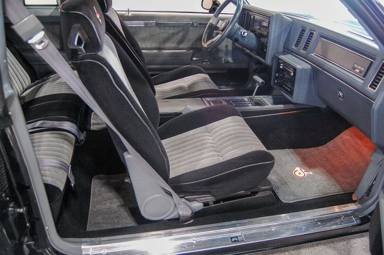 This is a mint 1987 Buick Grand National that is extremely well taken care of and very original. This car has lots of badging on it to let everyone know you are driving a Grand National; wheels, fenders, dash, headrest and floor mats. The engine bay is very clean and fun to inspect with the turbo and piping. The car drives like a dream, once the turbo spools up it pounces forward and throws the driver back in their seat. The automatic is perfect for this; all you have to do is hold on! The interior is a two tone gray and black color scheme. Everything inside is original except for an A-pillar mounted Auto Meter boost gauge. The original Delco radio, floor mats, gauges, and controls are all in very good working shape. It is a very spacious and comfortable interior. The black paint is in extremely good condition as the car has always been garaged kept.