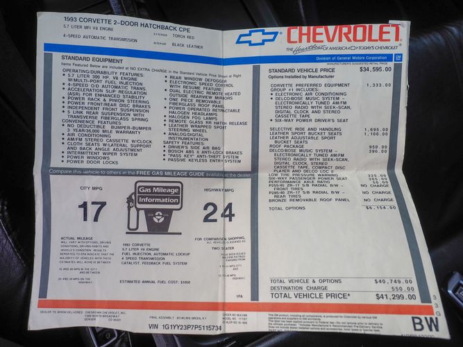 Excellent 25,452 original mileage 1993 Corvette Coupe