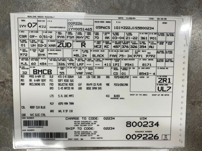 VIN: 1G1YZ22J1S5800234