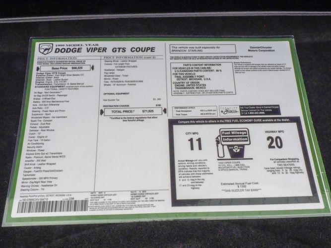 1999 Dodge Viper GTS Coupe with 14,491 original miles