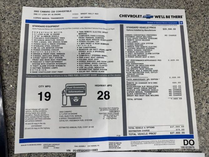 12,900 original mileage 2002 Chevrolet Camaro SS 35th Anniversary Convertible