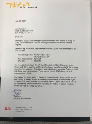 Beautiful 2005 Ford Mustang Saleen #52. Equipped with a 4.6L, 5-speed manual with the Saleen Powerflash tune. This Ford Mustang runs and drives great! Very low miles! The odometer reads 58,550 miles. This car is in excellent condition with a beautiful dark charcoal interior that has no rips or tears. Well documented with a letter from Saleen stating it is 1 of 2 finished in Windevel Blue with dark charcoal interior and options. Well maintained runs and drives great, cold A/C, comfortable exclusive Saleen bucket seats. Tires have lots of tread and the car is ready to go. New Saleen windshield decal included with sale. CALL TODAY 720-465-5104